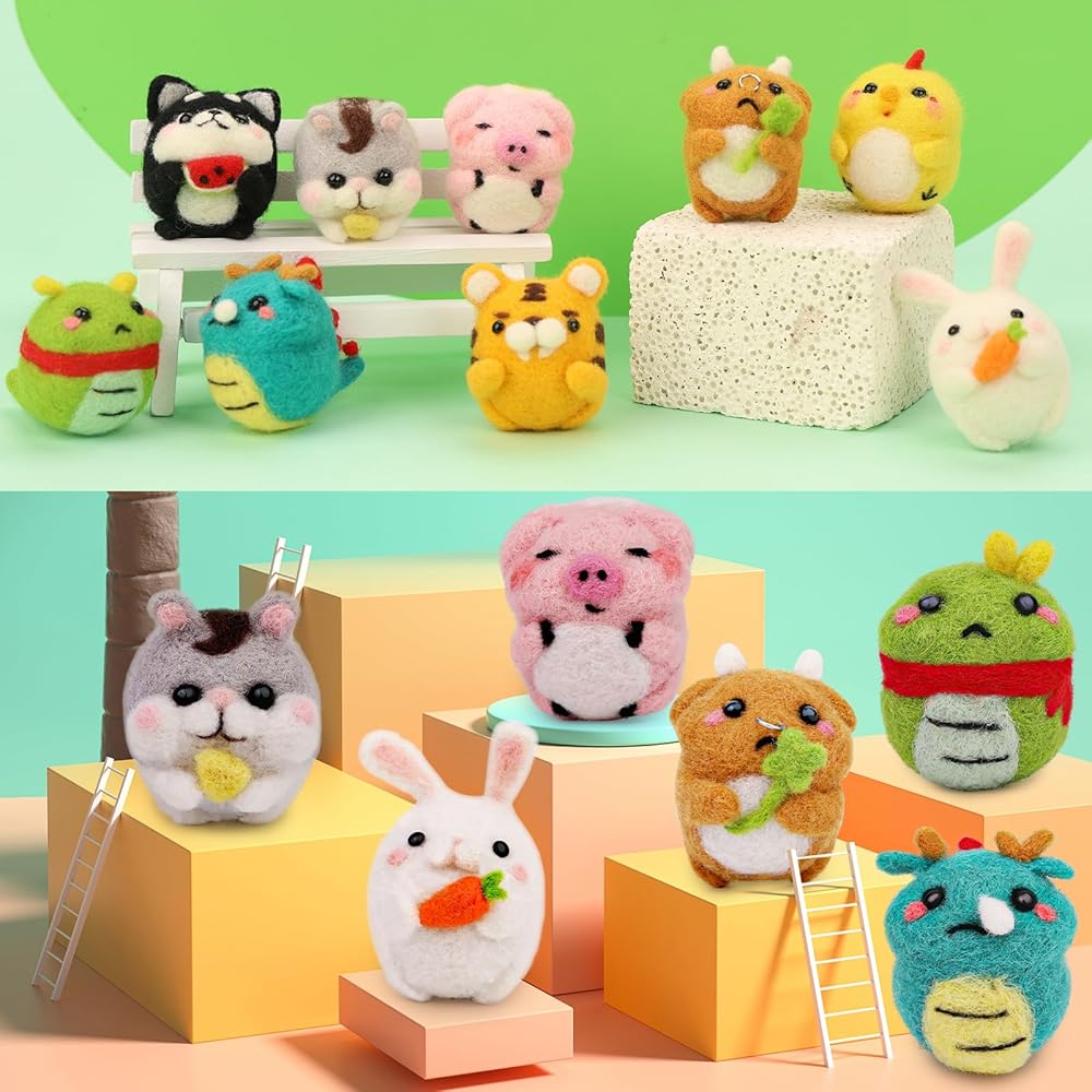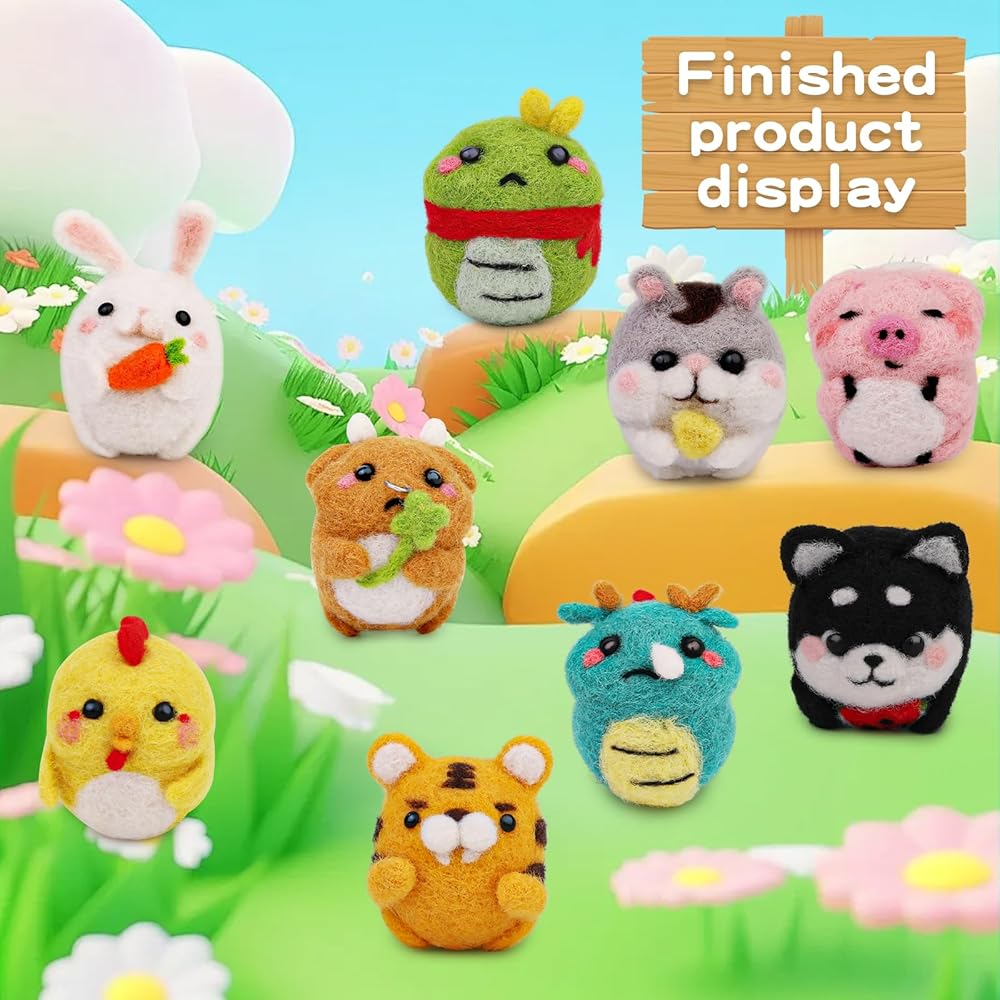 ❣صوف اللباد الفاخر - نحن نقدم لك ما يكفي من الصوف عالي الجودة لصنع 9 دمى حيوانات صغيرة لطيفة، الصوف رقيق وناعم وله ملمس ناعم بدون تكتل أو مناطق مصبوغة بشكل زائد، مما يجعلها المادة المثالية لإبداعك. صياغة.