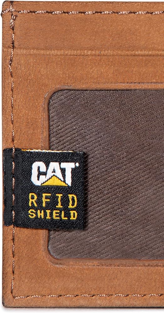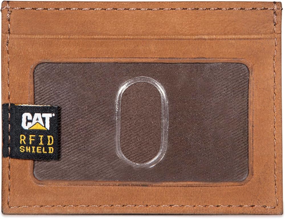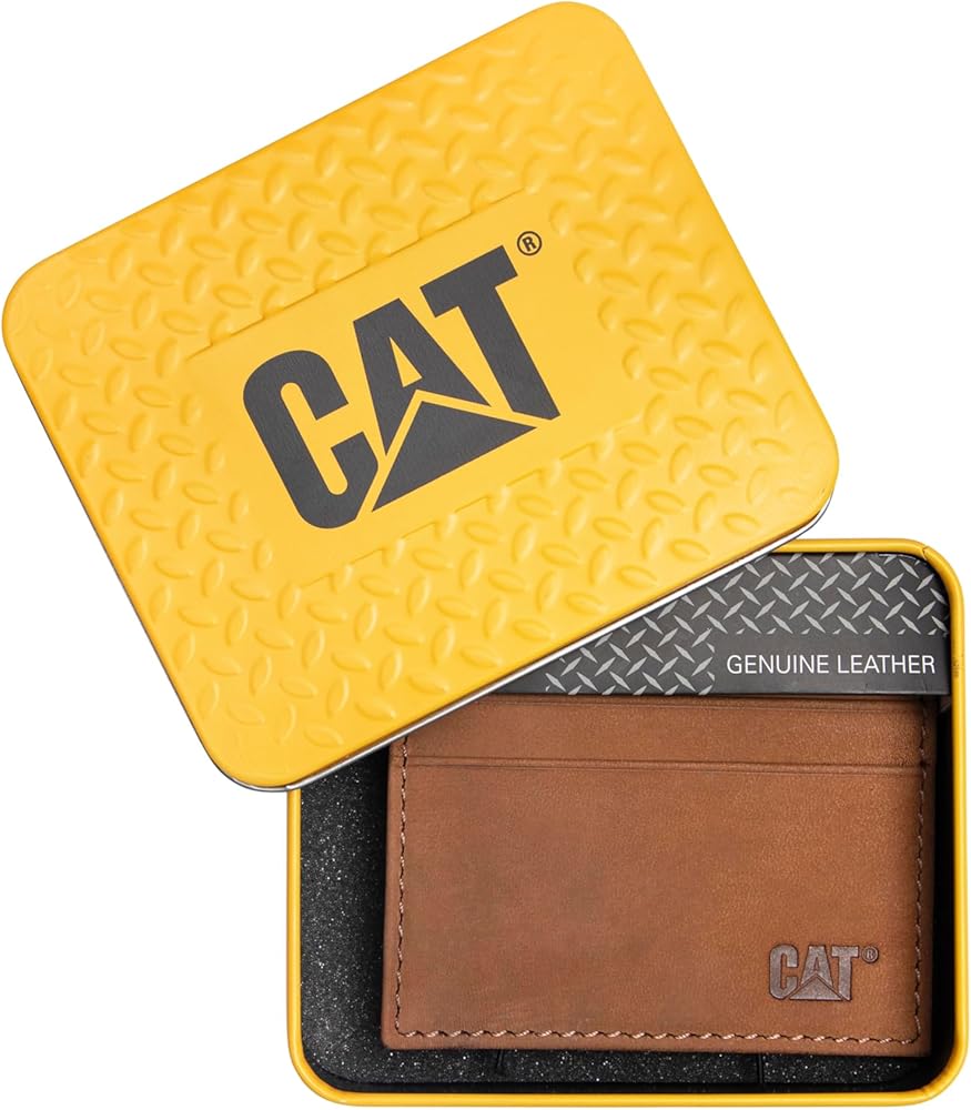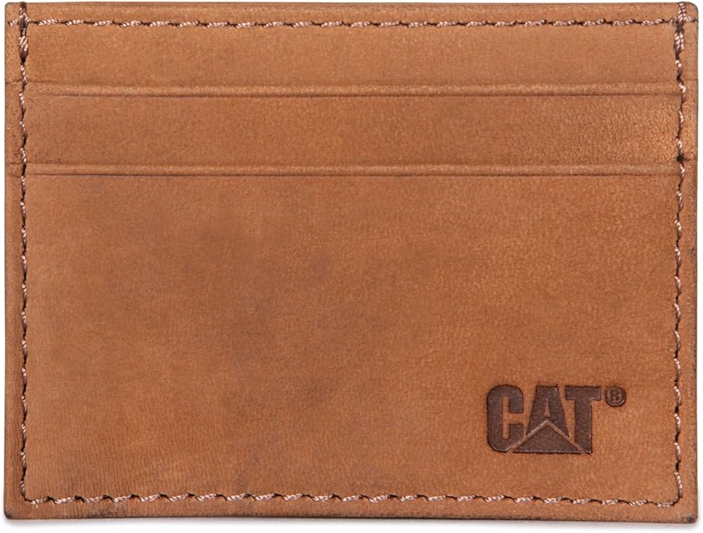 GENUINE LEATHER MENS CARD HOLDER WALLET: The Caterpillar Men's Card Holder Wallet is a thin-designed wallet made from 100% genuine leather. Fits perfectly in jeans, dress slacks, and shorts.