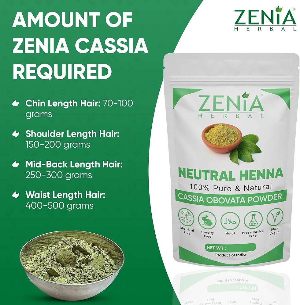 NATURAL HAIR CONDITIONER: Zenia Neutral Henna, also known as Cassia Obovota is a natural hair conditioner. It shares some of the hair treatment qualities of henna powder, but it does not dye the hair like henna powder.