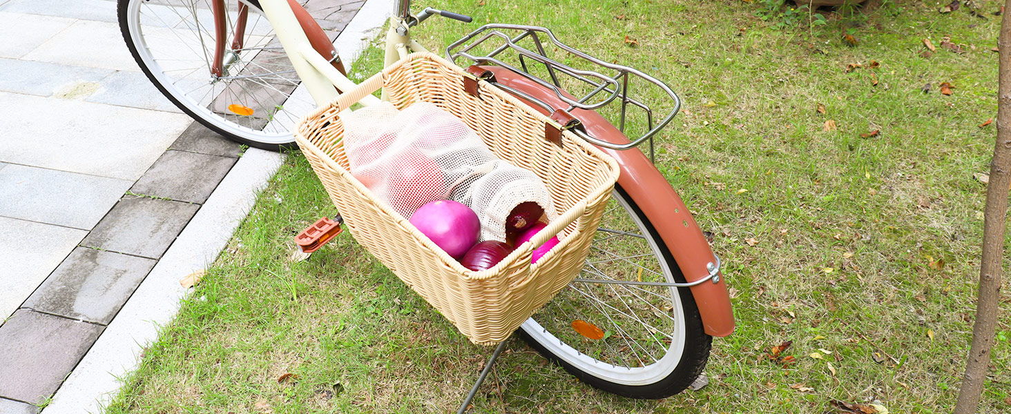 تصميم كلاسيكي ومتعدد الاستخدامات - تجسد سلة الدراجة هذه الطراز القديم الخالد، وهي تكمل أي دراجة. إنه يعزز سحر دراجتك بينما يوفر التطبيق العملي لرحلات التسوق ومغامرات التخييم والنزهات وركوب الخيل على مهل. علاوة على ذلك، يمكن استخدام سلة الدراجة المنسوجة يدويًا كسلة هدايا، أو حاوية خارجية، أو حتى قفص صغير للحيوانات الأليفة.