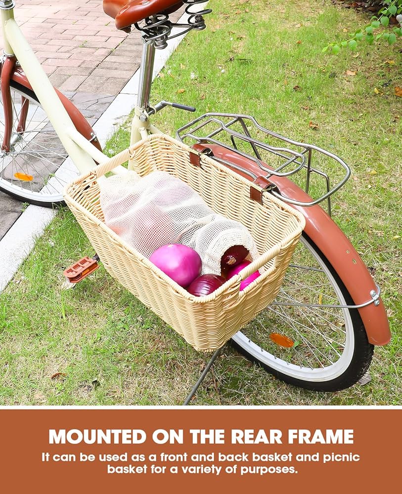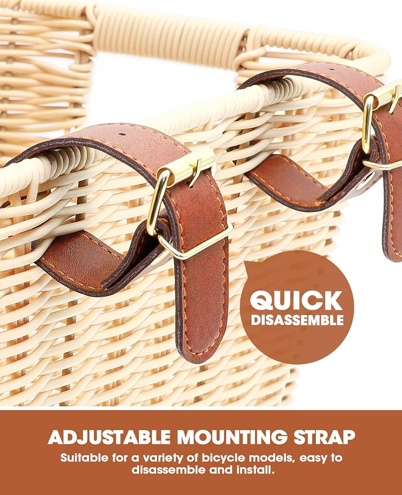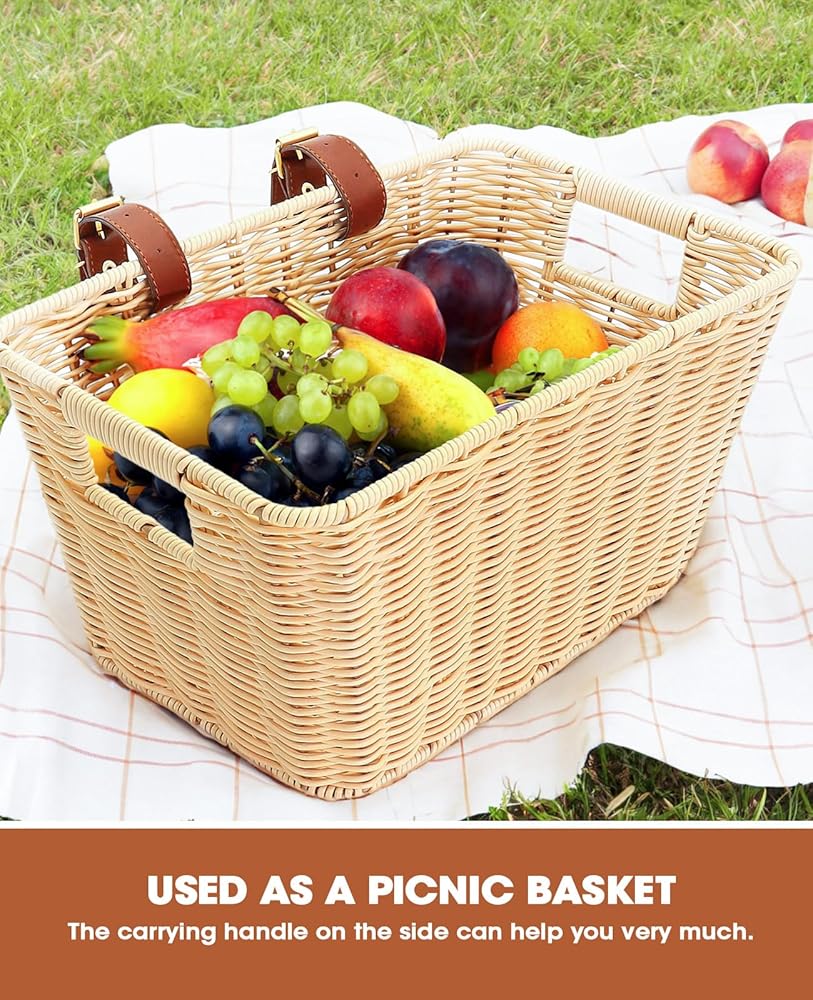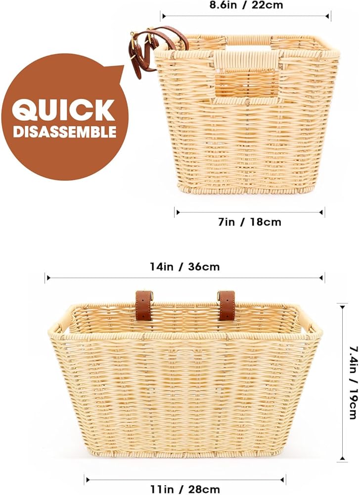 هيكل متين منسوج يدويًا - مصنوعة من خوص بلاستيكي متين ومقاوم للبهتان، تجمع سلة الدراجة المنسوجة يدويًا هذه بين الجمال والأداء الوظيفي. يضمن تصميمها القوي تحمل الاستخدام المنتظم والظروف الجوية المختلفة، مما يجعلها سلة خوص موثوقة للدراجة. في حين أن طبيعة الصناعة اليدوية قد تؤدي إلى اختلافات طفيفة في الحجم، إلا أن الجودة تظل ثابتة.