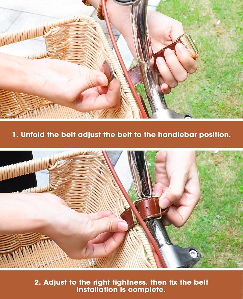مرفق آمن وسعة تحميل قصوى - سلة الدراجة، المصممة للمقود الأمامي، تأتي مع أحزمة جلدية قابلة للتعديل لتثبيتها في مكانها بشكل آمن. تضمن واجهة سلة الدراجة هذه تثبيتًا قويًا، مما يسمح لك بحمل متعلقاتك دون قلق. إنها توفر سلال دراجات لحل دراجات البالغين، وتستوعب مجموعة متنوعة من العناصر مع مساحة تخزين واسعة.