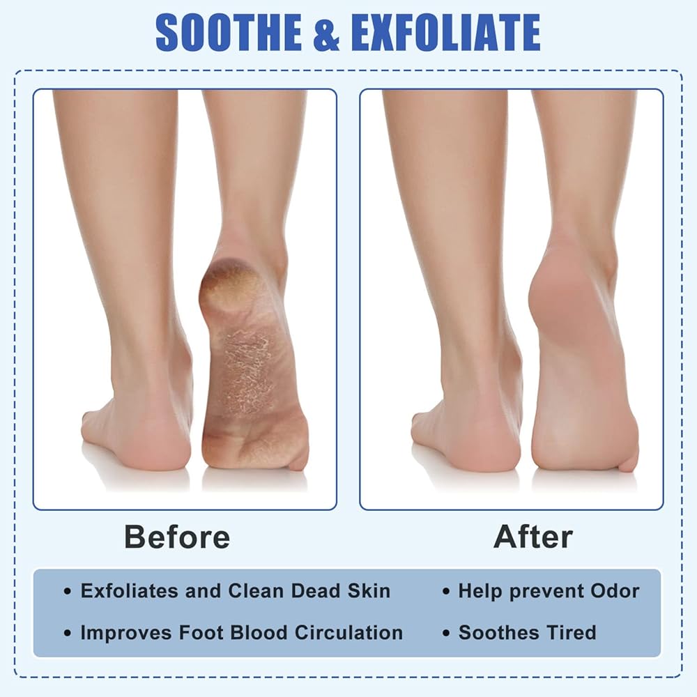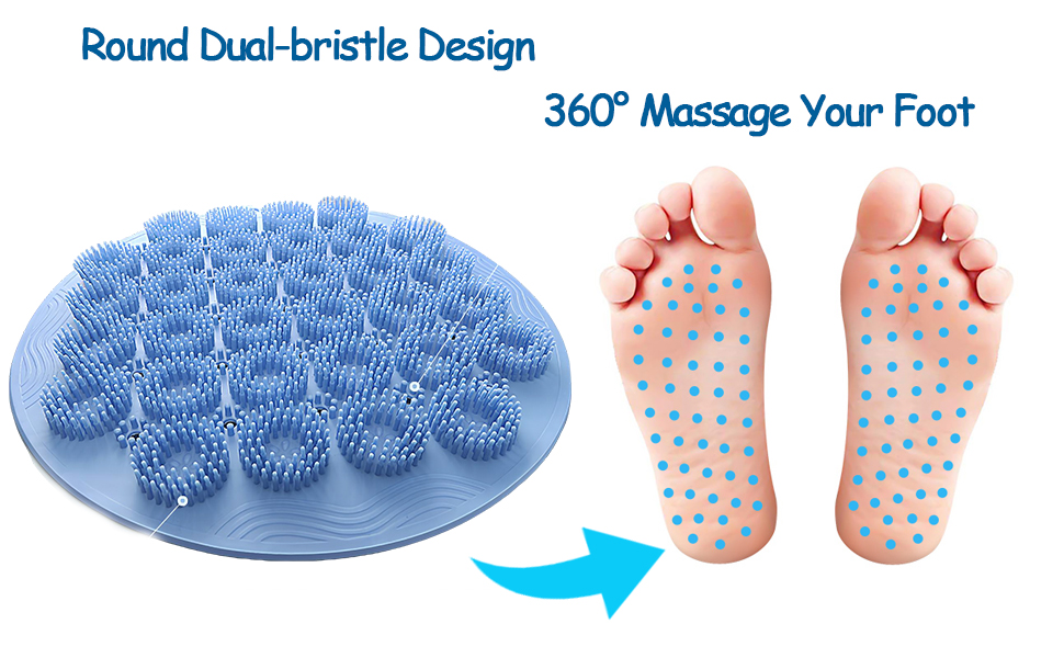 【التنظيف والتدليك】فرشاة تنظيف القدم مصنوعة من أكثر من 500 شعيرات سيليكون ناعمة، والتي تنتج رغوة غنية عندما تلتقي بالصابون، وتنظف الأوساخ والزوائد اللحمية بسرعة على باطن القدمين، وتدليك باطن القدمين. عند فركها بشكل متكرر.