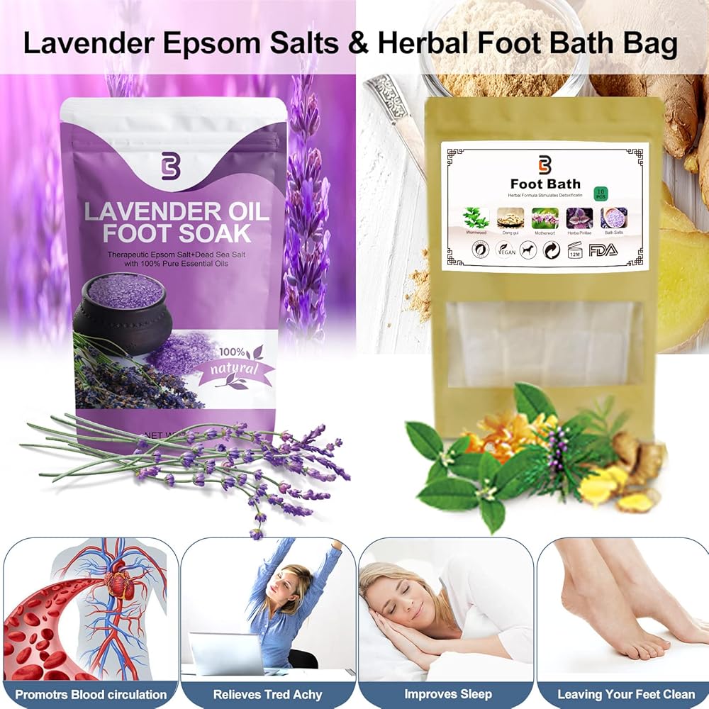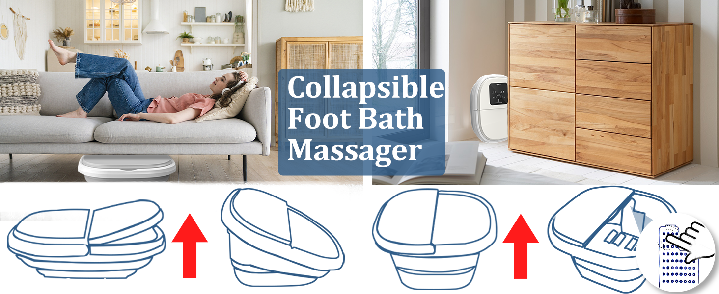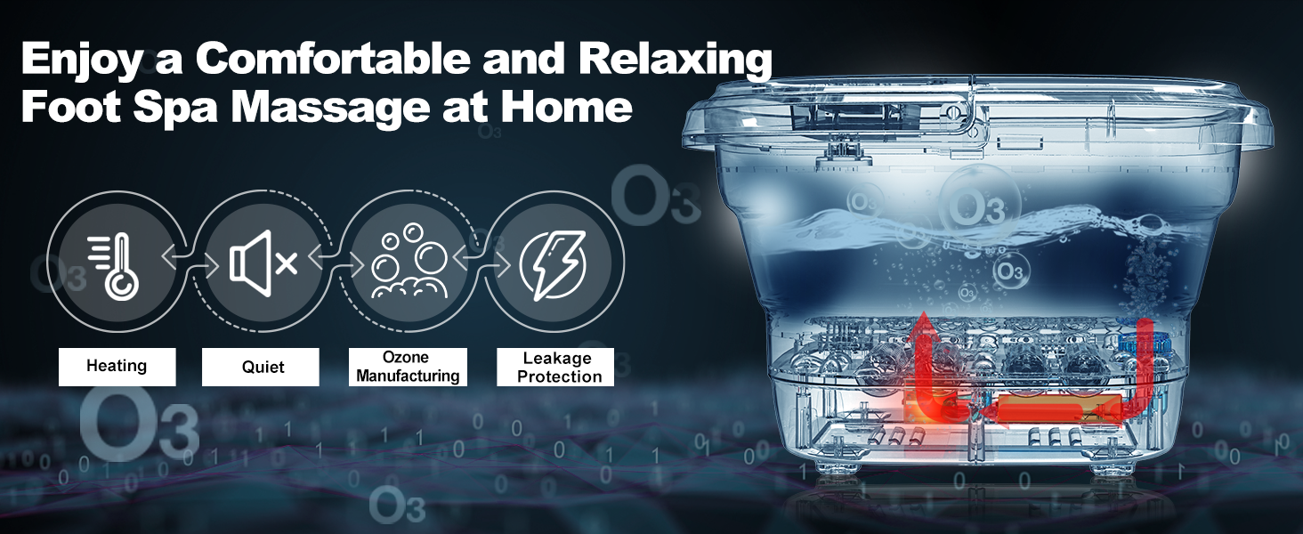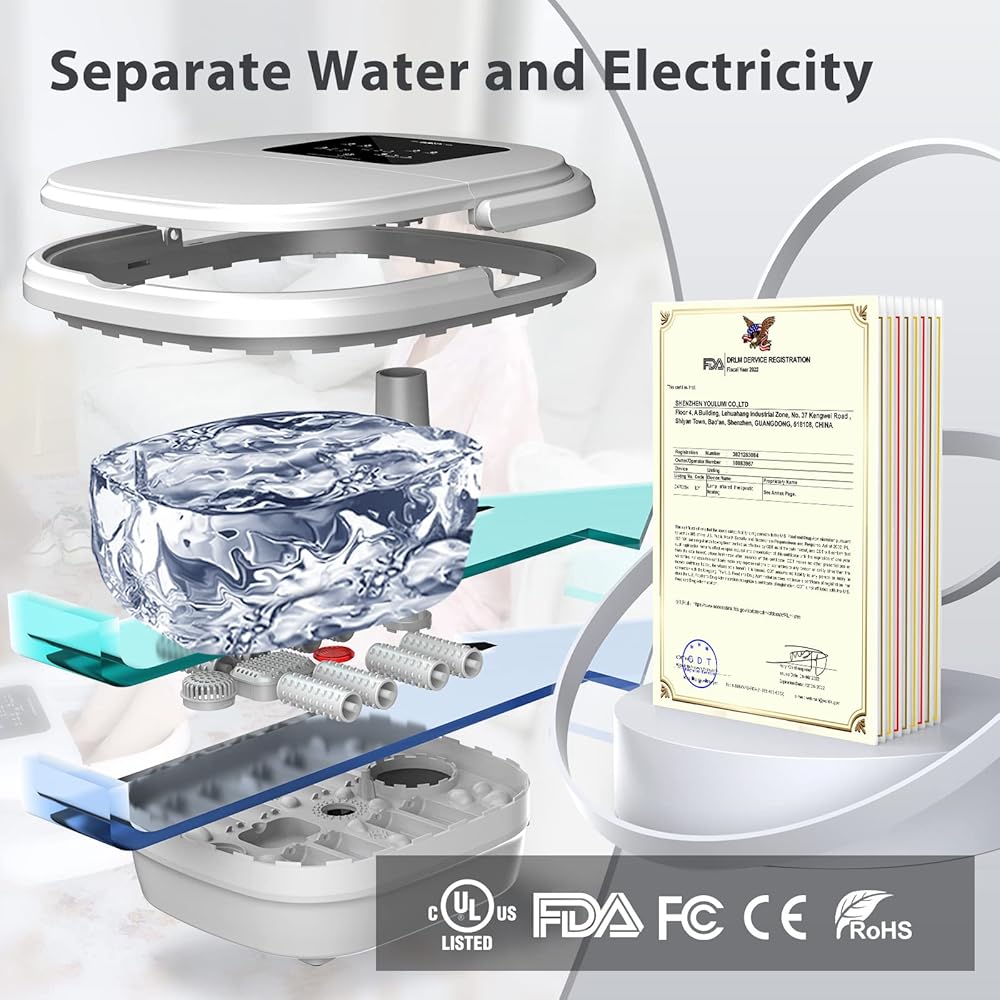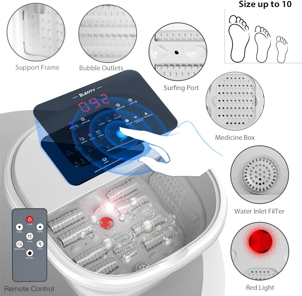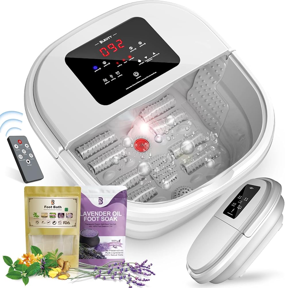 BLEOTY سبا القدم للنساء، سبا حمام القدم قابل للطي مع الحرارة والتدليك، حوض نقع القدم مع تعقيم الأوزون، التحكم في درجة الحرارة، التوقيت، ملح إبسوم اللافندر وحقيبة حمام القدم العشبية، هدايا للأم