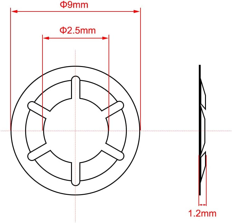 - الحجم: M6 (المعرف: 5.4 ملم، القطر الخارجي: 14 ملم)