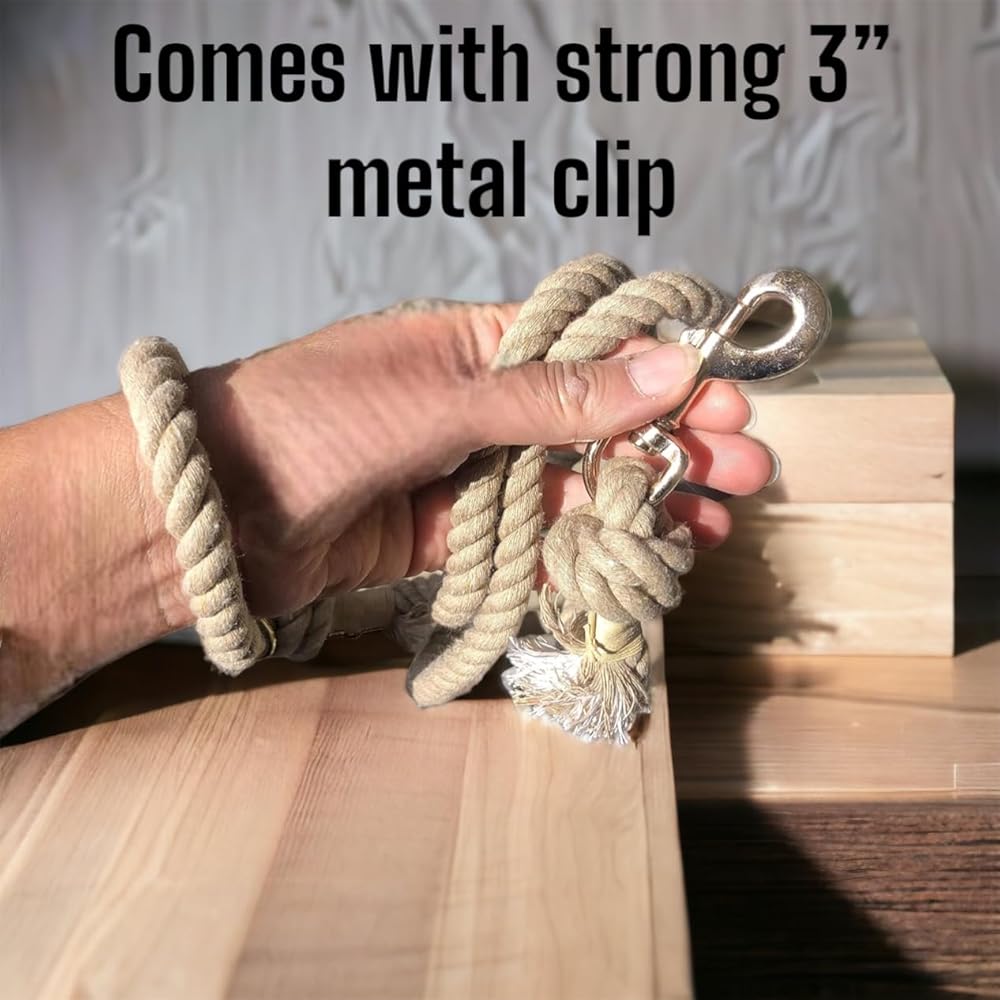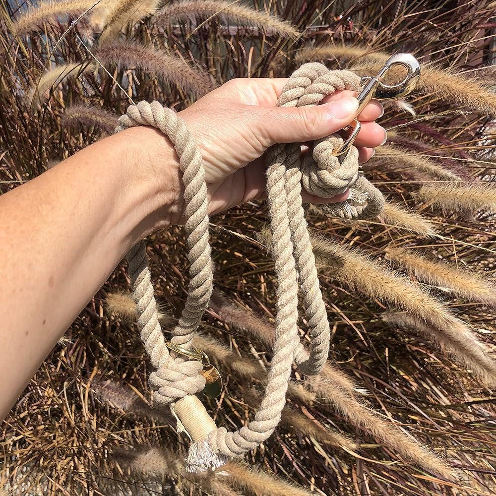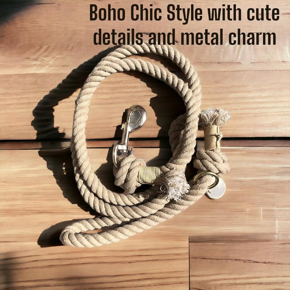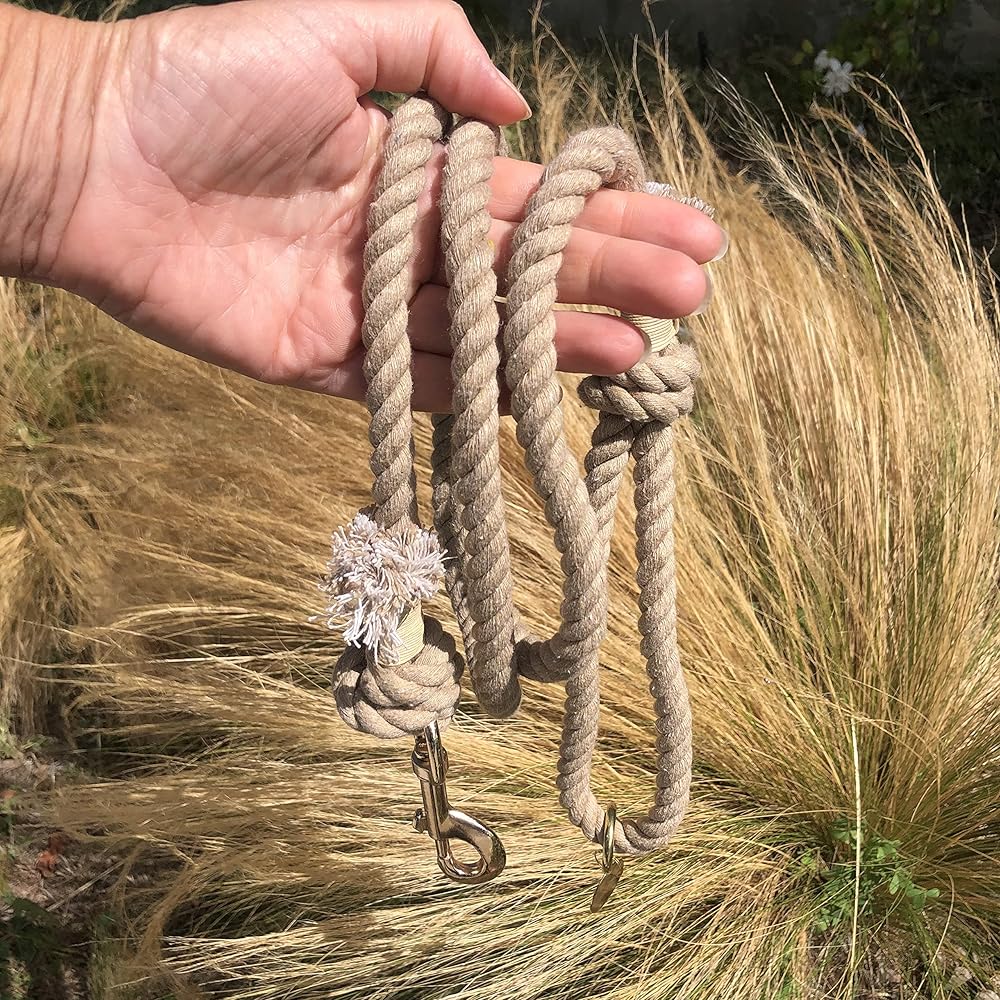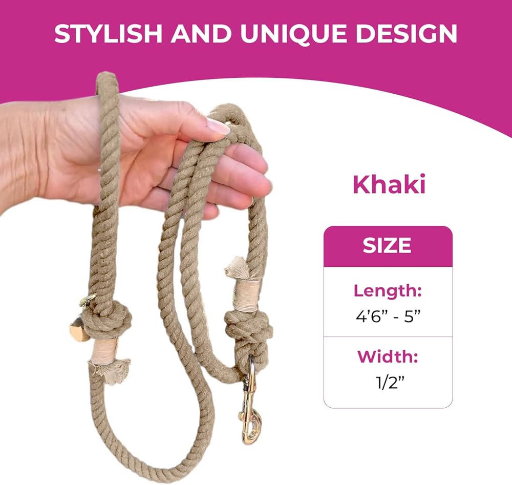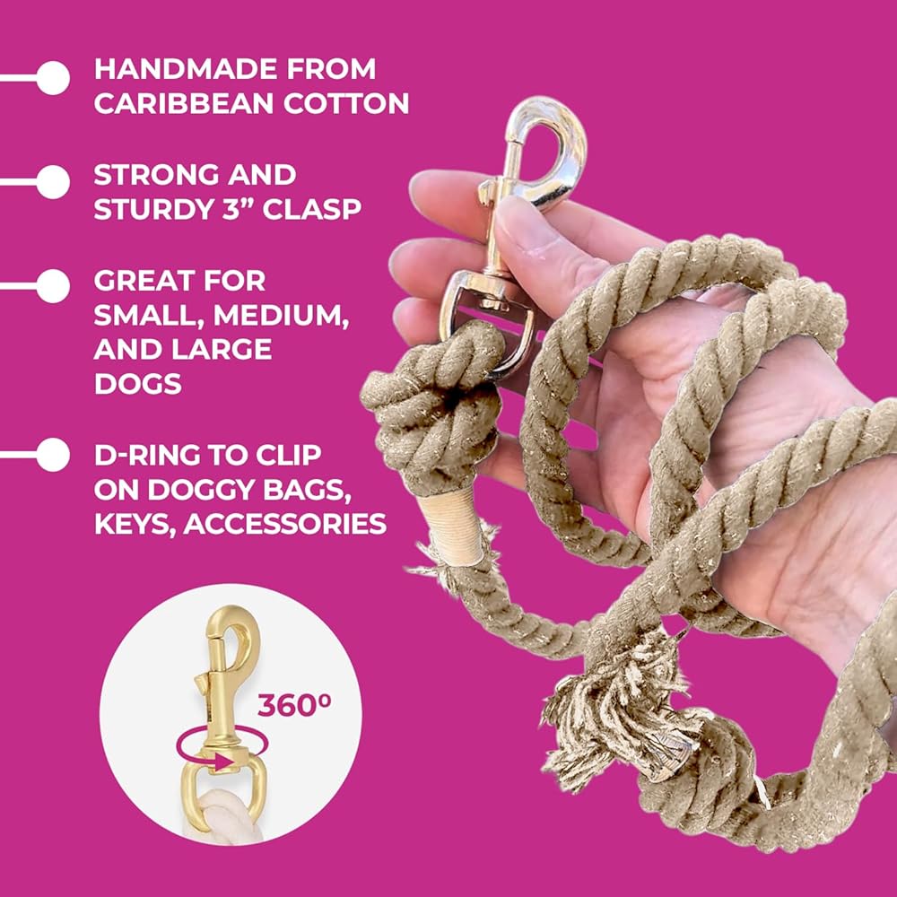مريح: مصنوع يدويًا من القطن الكاريبي، هذا المقود الحبلي ناعم ومريح في الإمساك. حلقة اليد تناسب بشكل مريح ويسهل الإمساك بالمقود ولفه حول يدك أثناء المشي مع كلبك. هناك ملمس جميل للحبل والوزن جميل وخفيف.