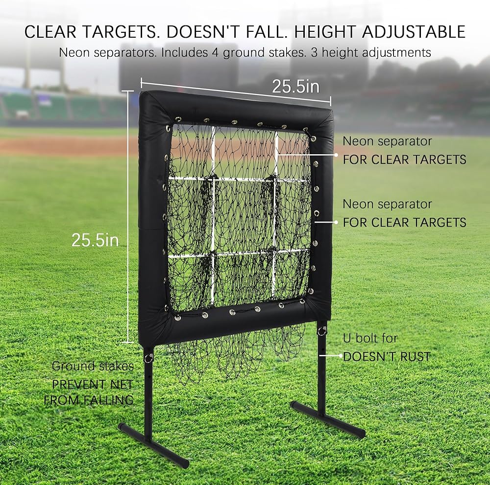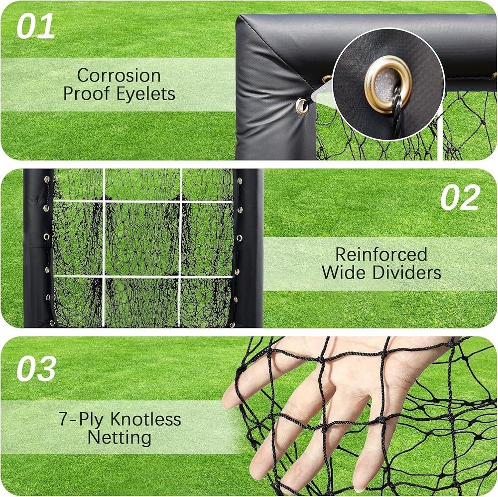 • [9 أهداف للرمي] تسمح لك شبكة رمي البيسبول بتعزيز دقة الرمي والرمي والضرب سواء كنت في الملعب أو في الفناء الخلفي. من خلال بناء ذاكرة العضلات، ستكون الكرة السريعة وكرة التغيير وكرة الكسر على الهدف عندما يأتي الضغط!