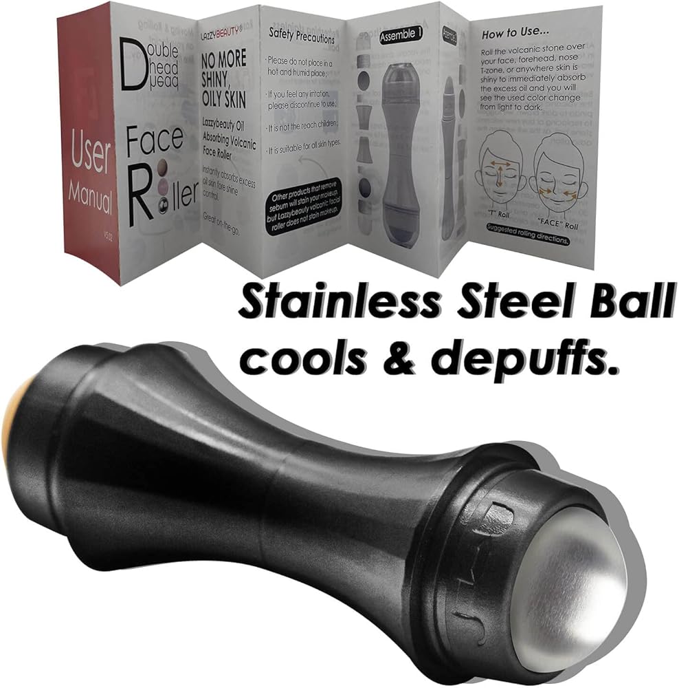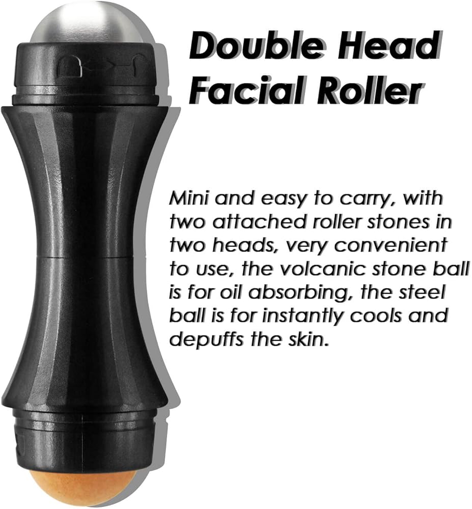 أسطوانة تجميل الوجه ذات الرأس المزدوج: صغيرة وسهلة الحمل، مع حجرين دوارين مرفقين في رأسين، مريحة جدًا في الاستخدام، الكرة الحجرية البركانية لامتصاص الزيت، والكرة الفولاذية لتبريد البشرة وإزالة الانتفاخات على الفور.