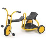 The Angeles MyRider 15" Tandem Toddler Tricycle is perfect for little riders. The back-supported seat is only 15" tall, so many little ones can still reach the ground. This tandem kids tricycle features a second seat on the back for another child to sit while a sibling or friend pedals. As for safety, all MyRider trikes are made with a powder-coated steel frame that resists rust, as well as non-exposed pedal hardware and solid rubber tires on spokeless steel wheels. There's even a recessed no-pinch hub to protect small hands when steering! This kids tricycle is the perfect starter bike for a home or school with multiple children to entertain.