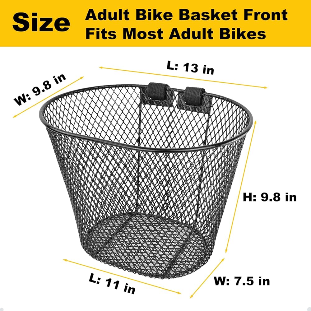 HIGH-QUALITY STRUCTURE: The Adult bicycle basket is forged with high-quality metal wire, which is not easy to be deformed, stable in load and durable. The exterior of the Adult bicycle basket has a rust-resistant coating that is strong and rust-resistant. Easy to maintain-Wipe clean with a damp cloth, so you can use it for a long time with confidence.