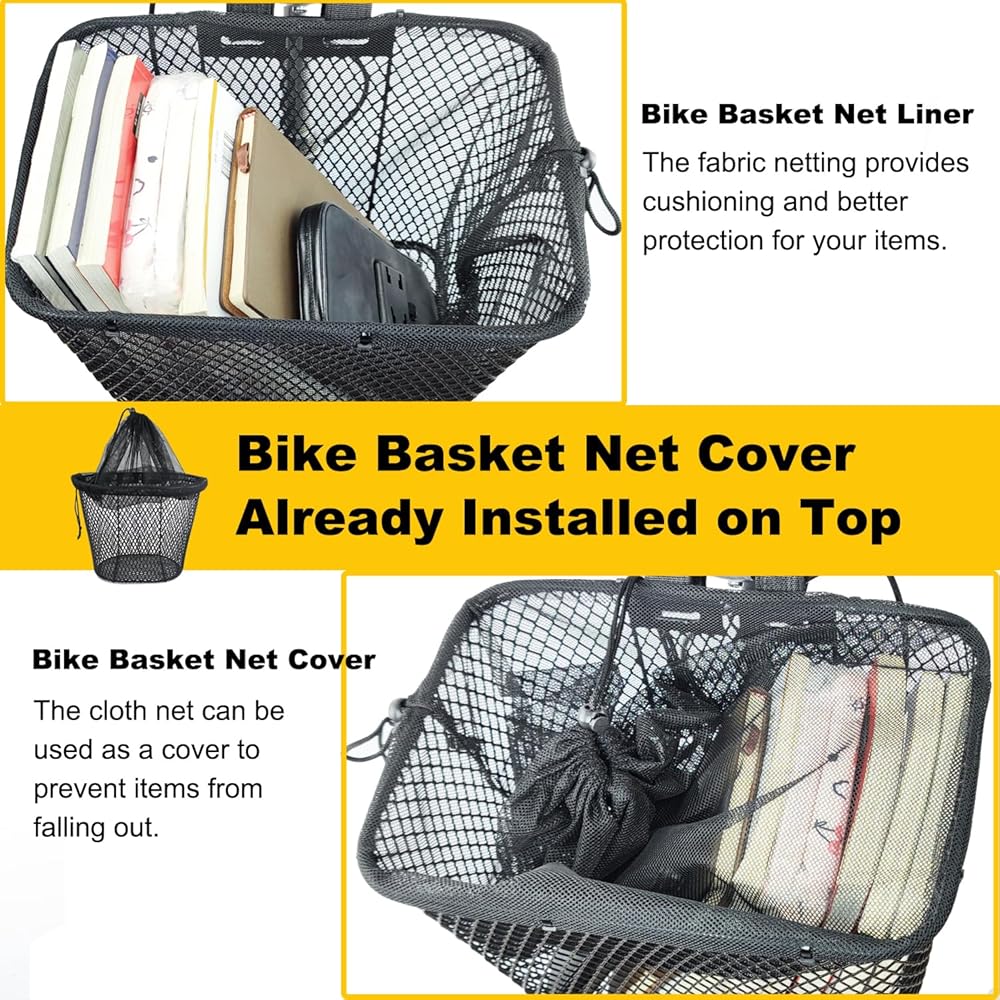 UNIVERSAL DESIGN: As it is installed with adjustable hook loop straps, the front basket is suitable for most Adult bicycles, so you can buy it with confidence! Bike Basket Net Cover has been designed on the top of the basket to prevent items from falling; it can also be used as a simple lining for the basket, which can act as a cushion to better protect the items. The Bike Basket Net Cover is uniquely designed to make your life more convenient!