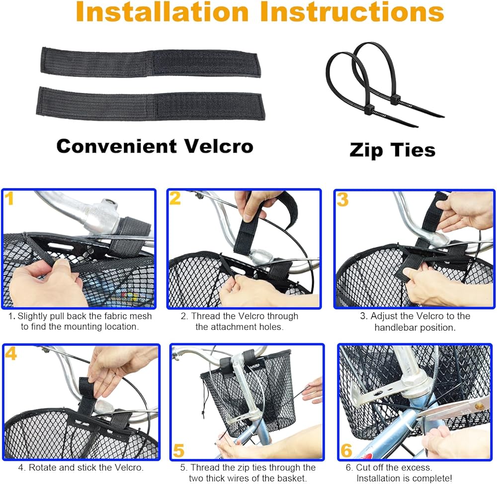 EASY TO INSTALL AND DISASSEMBLE: The Adult metal wire bicycle basket is installed with an adjustable sturdy hook loop straps. Ready to install and remove without any additional installation tools. It is simple, convenient and durable. If you need to remove the basket, just gently tear off the hook loop straps to install the shoulder strap, and then you can quickly remove the basket. The installation can be completed in 1 minute, easy and simple!