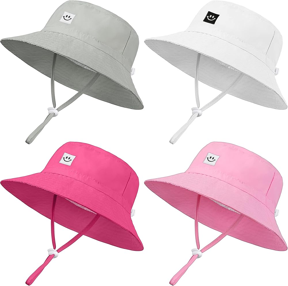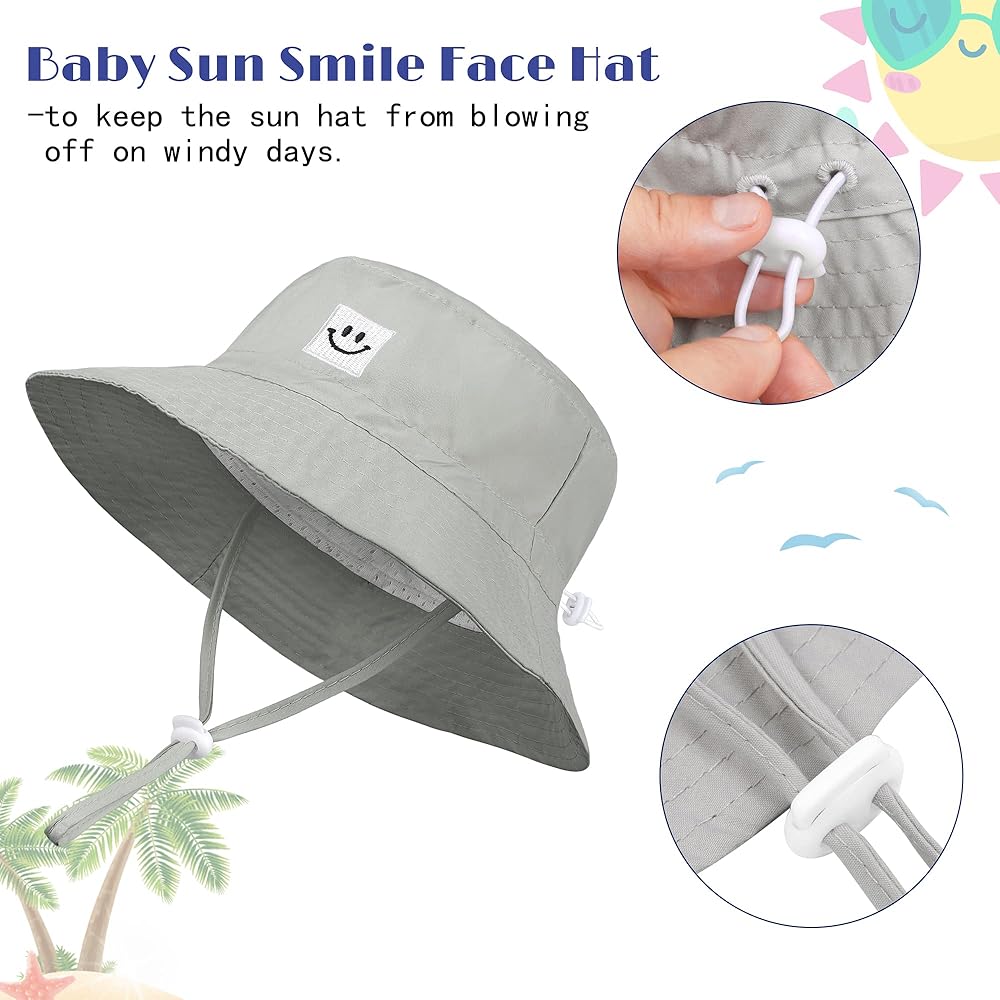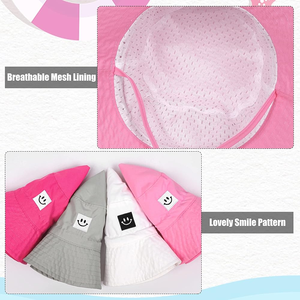 Package includes: you will receive 4 pieces of baby sun hats, each hat has an exquisite smiley face embroidery pattern, including 4 various colors: black, grey, navy, and white; enough for you to meet the needs of daily use, also can share with friends and family, a variety of basic colors better match with the clothing