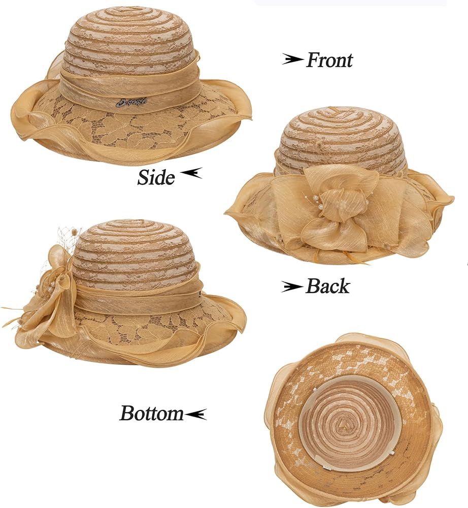 【قبعة شمسية أنيقة للسيدات】: قبعة الشمس مصنوعة من الدانتيل والبوليستر والأورجانزا. إنه جيد التهوية ومريح في الارتداء، ويمكنه حماية رأسك ووجهك ورقبتك من أشعة الشمس.