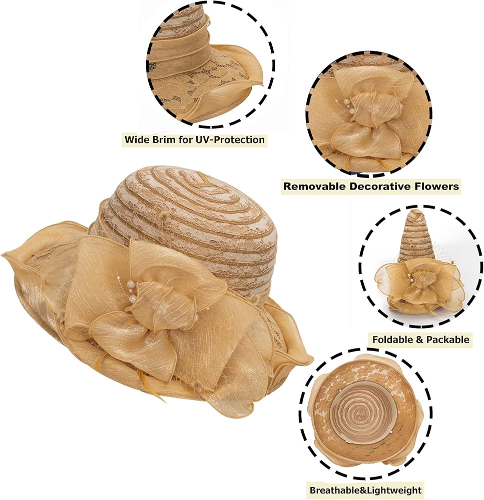 【مظهر قابل للطي والأناقة】زخرفة زهور رائعة، مصنوعة يدويًا من الأورجانزا الرقيق، تمامًا مثل الزهرة المزهرة الرائعة، تضيف أناقة القبعة بأكملها. قبعة شمسية ذات حافة واسعة تحميك من الأشعة فوق البنفسجية كما أنها عصرية ومثالية للعديد من أنماط الملابس. قبعة مرنة ذات حافة عريضة قابلة للطي والتعبئة ومناسبة للعديد من المناسبات.