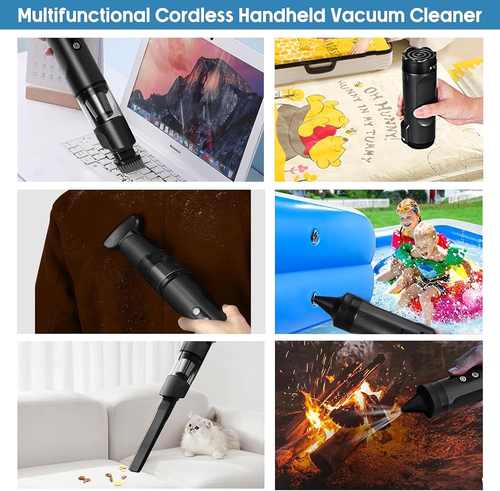 【مرفقات فوهة 4 في 1】تأتي مكنسة الغبار اليدوية الخاصة بنا مع أربع ملحقات فوهة مصممة لأغراض التنظيف المتنوعة. مع وضع الشفط والنفخ ثنائي الوظيفة، يمكنك بسهولة إزالة الغبار أو نفخ الهواء في تلك الزوايا التي يصعب الوصول إليها. يمكن أن يعمل الطرف الخلفي كمنفاخ هواء، بينما يوفر الطرف الآخر أداءً قويًا في التنظيف بالمكنسة الكهربائية. بالإضافة إلى ذلك، يمكن أن تعمل المكنسة الكهربائية كأداة عازلة للفراغ عن طريق إزالة الهواء من أكياس التفريغ بشكل فعال.