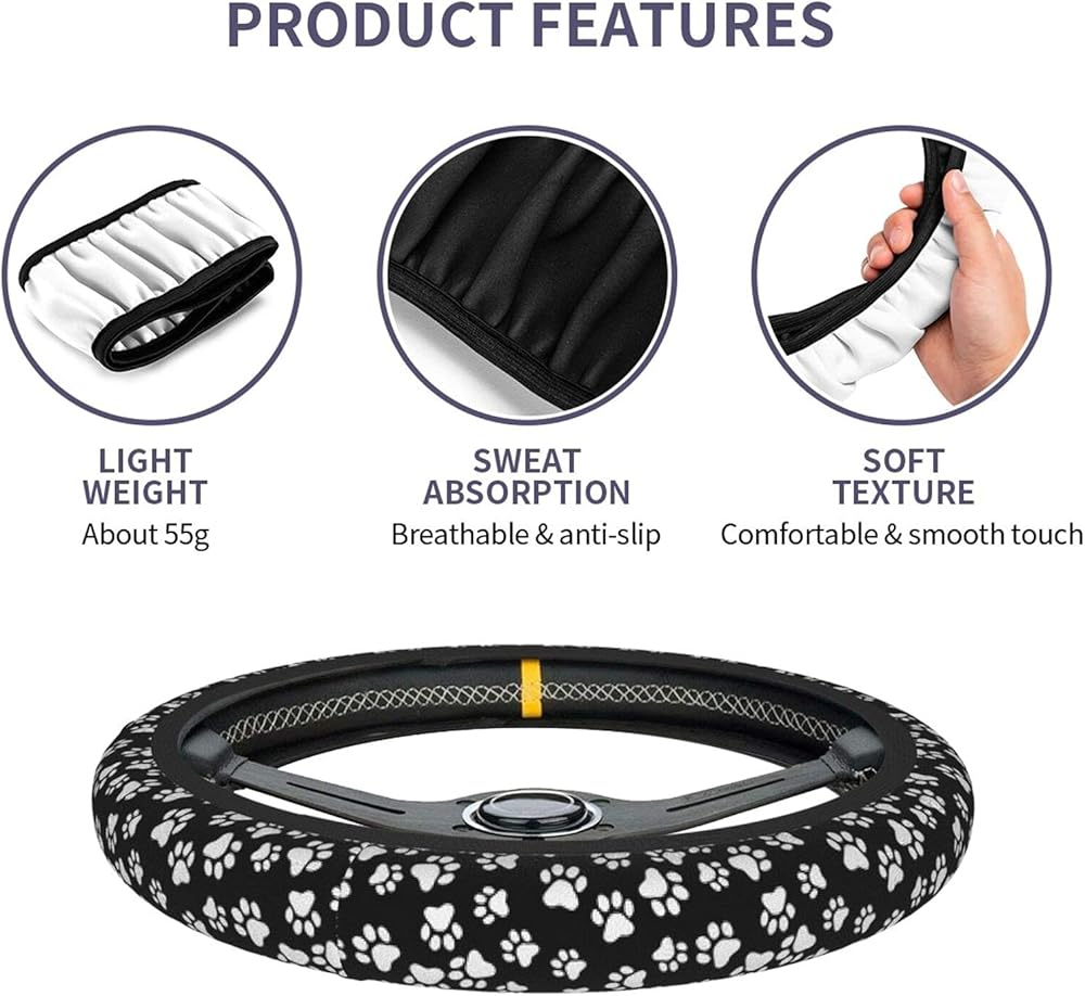 • MATERIAL: Our steering wheel cover made of neoprene material, fit to all-season, provides moderate protection in both hot and cold weather. Gives you more control on the road, serve you for long time.