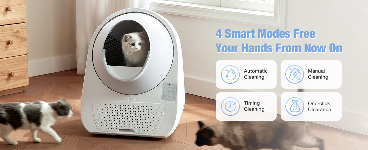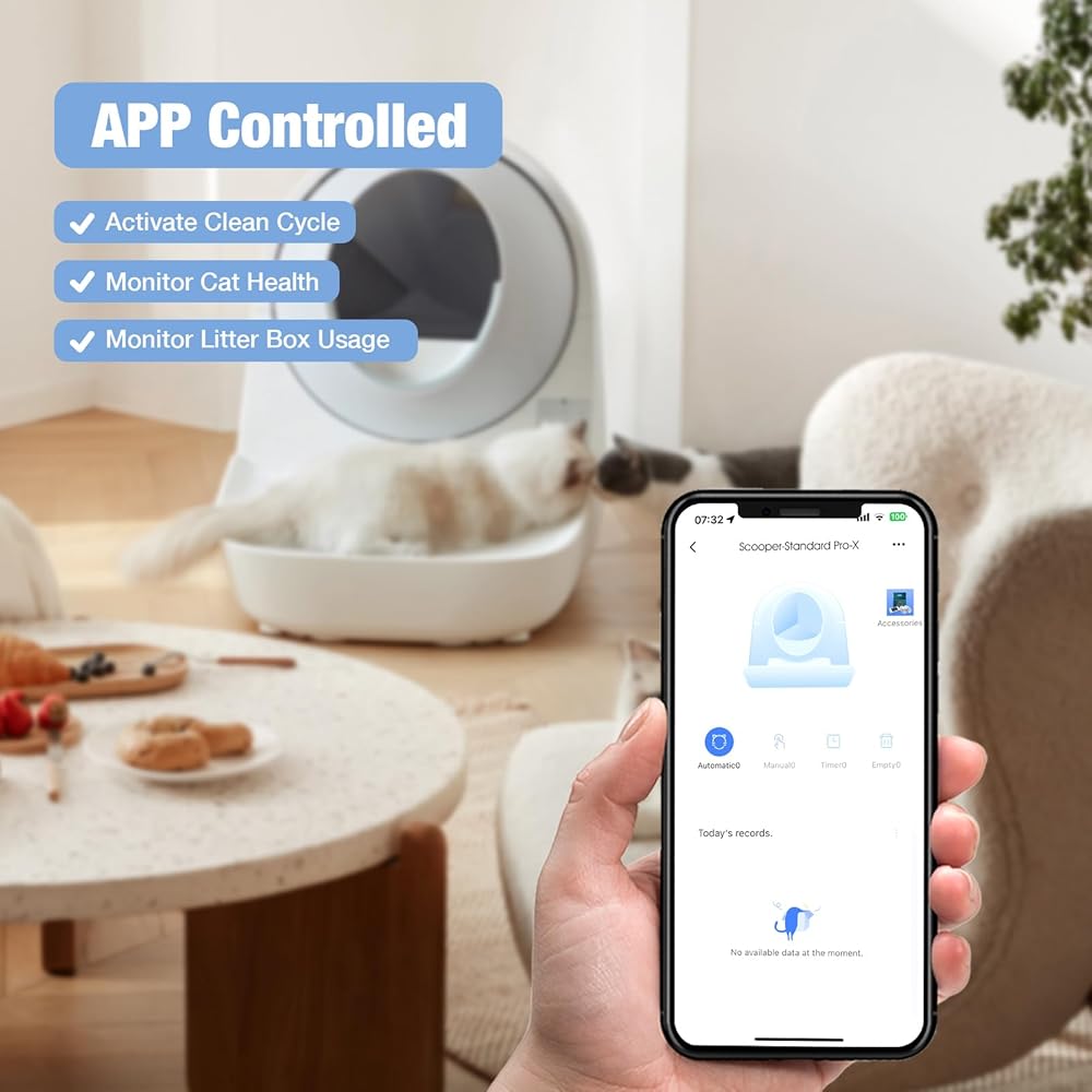 صندوق فضلات القطط الآلي للتنظيف الذاتي من كاتلينك - تنظيف بدون استخدام اليدين مع التحكم في التطبيق، وإزالة مزدوجة للرائحة - حجم كبير جدًا للقطط التي يبلغ وزنها 3.3 إلى 22 رطلًا - صندوق فضلات القطط الآلي الذكي (ترقية)