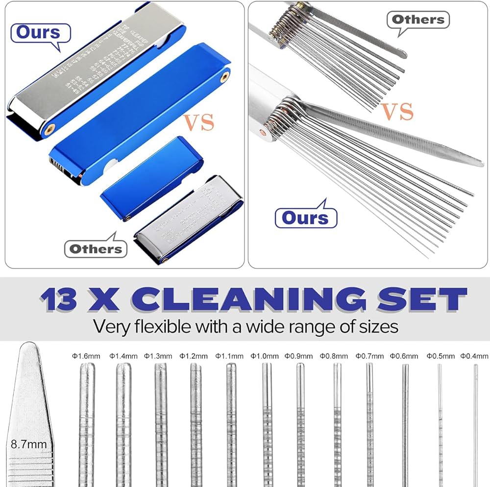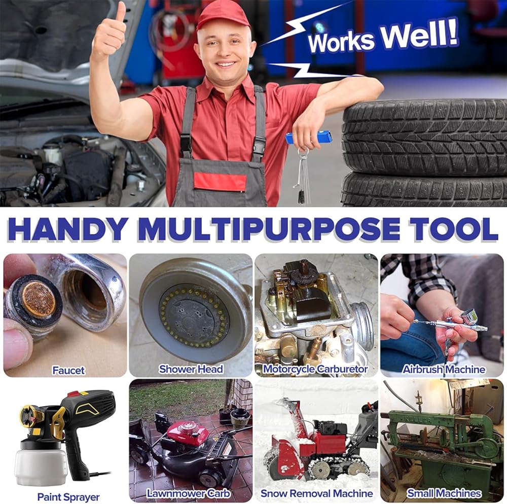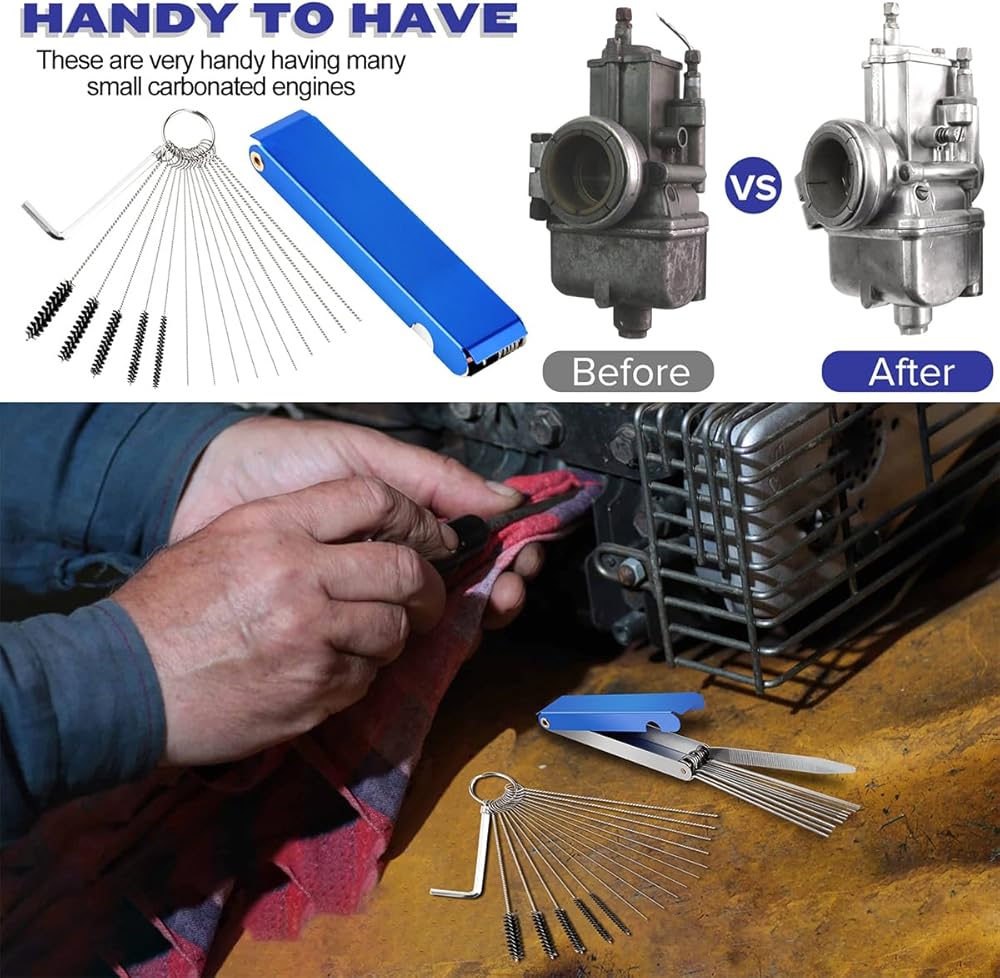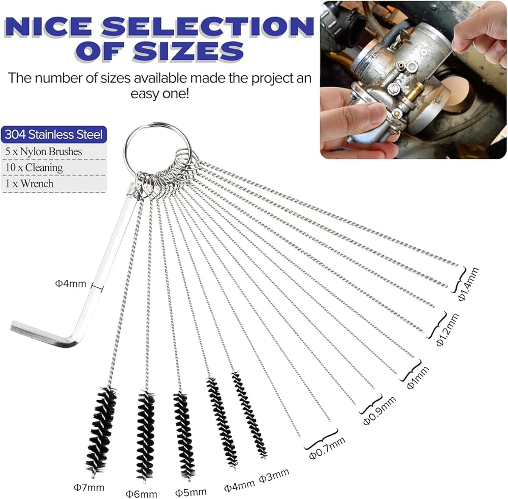 استخدامات متعددة - الفرش والإبر مفيدة لتنظيف الفتحات الصغيرة مثل الفوهات وأدوات الهواء ومواقد التخييم وما إلى ذلك. كما أنها مناسبة لجميع الدراجات النارية، وATV، واللحام، وطرف الشعلة، وجهاز الوشم، ومعدات العشب، ومنفاخ الثلج والعديد من المكربنات الرياضية القوية الأخرى.