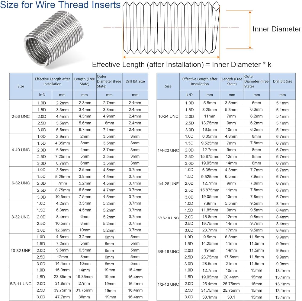 الحجم - حجم الخيط: 1/4-28 UNF؛ الطول الفعال (بعد التثبيت): 2.0D = 12.7 مم / 0.5 بوصة؛ طول الحالة الحرة (قبل التثبيت): 9 مم / 0.35 بوصة؛ القطر الخارجي للحالة الحرة (قبل التثبيت): 7.8 مم / 0.31 بوصة؛ النوع: إدراج ملولب حلزوني