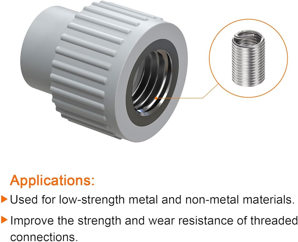 التطبيقات - يستخدم بشكل أساسي لمختلف المواد المعدنية وغير المعدنية منخفضة القوة، مثل الألومنيوم والمغنيسيوم والحديد الزهر والبلاستيك والمطاط وMDF والسيراميك والألياف الزجاجية والخشب. تحسين قوة ومقاومة التآكل للوصلات الملولبة، ومنع ارتخاء الخيط وانزلاقه