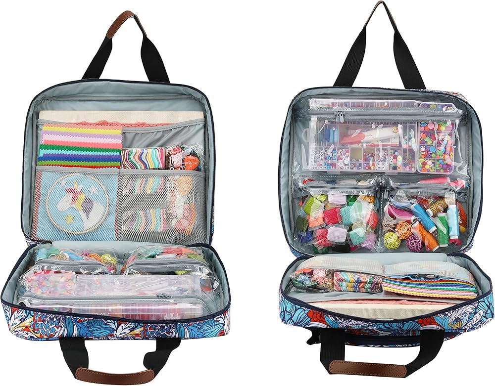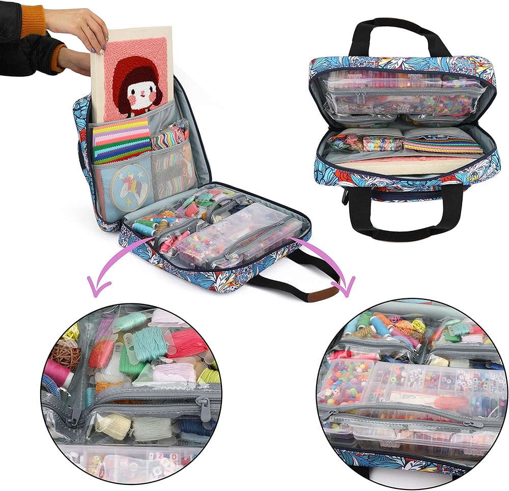 ❀❀رائعة لتخزين الصوف وخطاطيف الكروشيه وإبر الحياكة ومجموعة الغرز المتقاطعة وأي مشروعات يدوية. حقيبة تخزين ذات سعة كبيرة، ومساحة كبيرة والعديد من المقصورات المختلفة للحفاظ على كل شيء مرتبًا ومنظمًا.