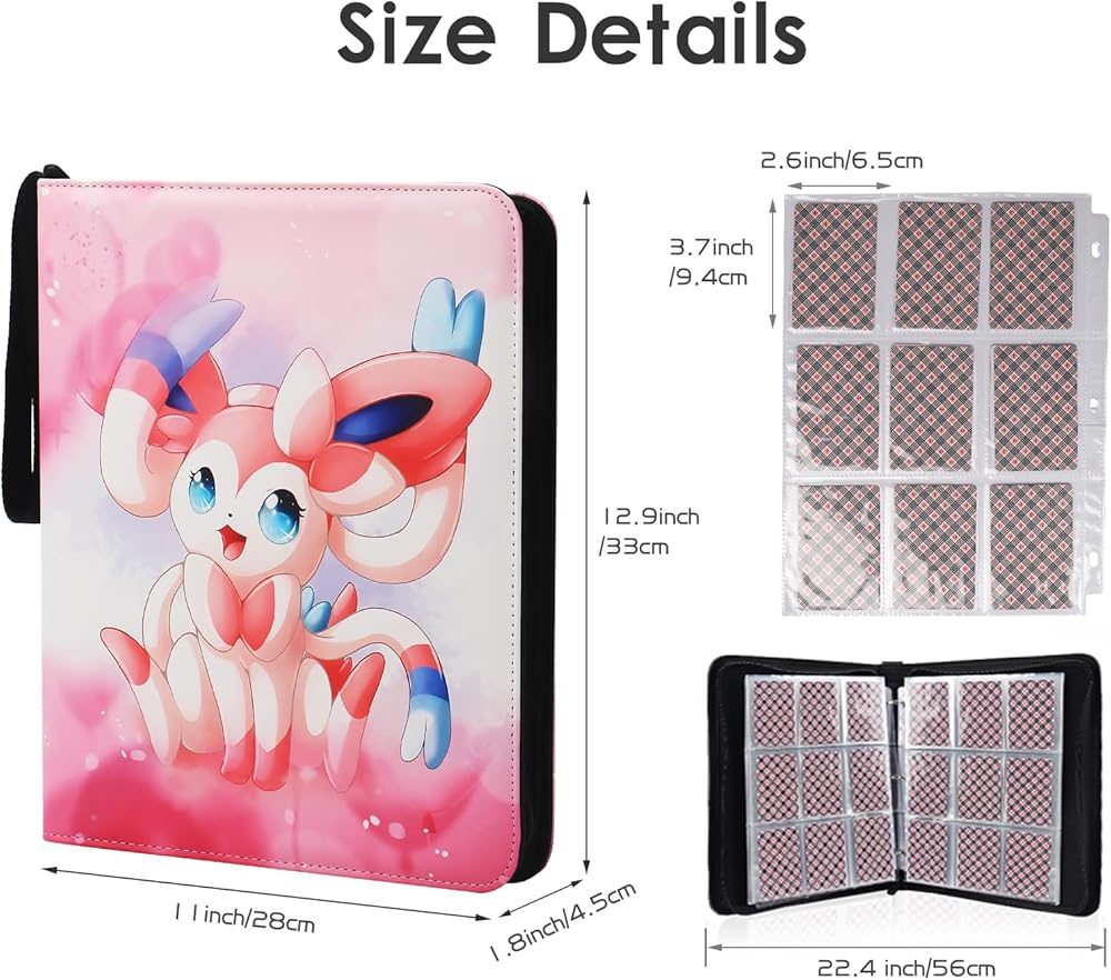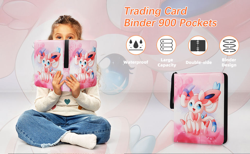 حافظة بطاقات لبوكيمون 900 جيب، حافظة بطاقات تجارية مكونة من 9 جيوب، مجموعة بطاقات موثقة تناسب 900 بطاقة مع 50 حافظة بطاقات قابلة للإزالة، ألبوم تخزين مجموعة للأولاد والبنات