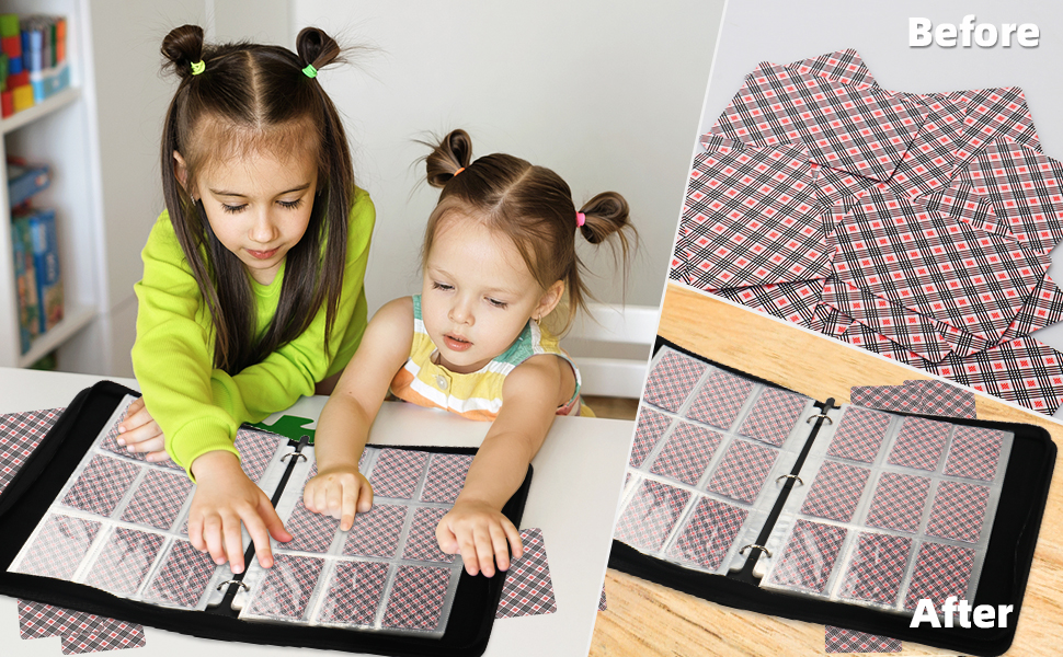 • هدية رائعة لأطفالك - لا يستطيع حامل البطاقات تخزين بطاقات الألعاب وبطاقات العمل والصور وغيرها من البطاقات ذات الحجم القياسي فحسب، بل يمكن أيضًا تقديمها كهدية لعيد الشكر والكريسماس وأعياد الميلاد وغيرها من العطلات للأطفال، مما يضيف متعة مختلفة إلى هم.