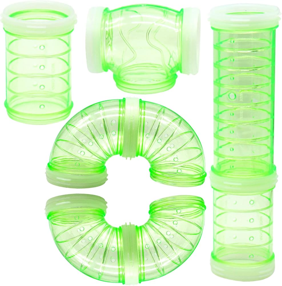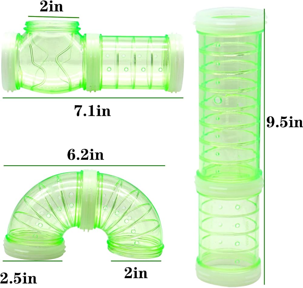 • 【SIZE & PACKAGE】: Tunnel diameter: 2.1inch, great for Hamsters, ferrets and rats, guinea pigs and small pet. Our hamster cage tubes kit is consist of totally 8pcs and they can be spliced together to connect the hamster bathroom of the same diameter.