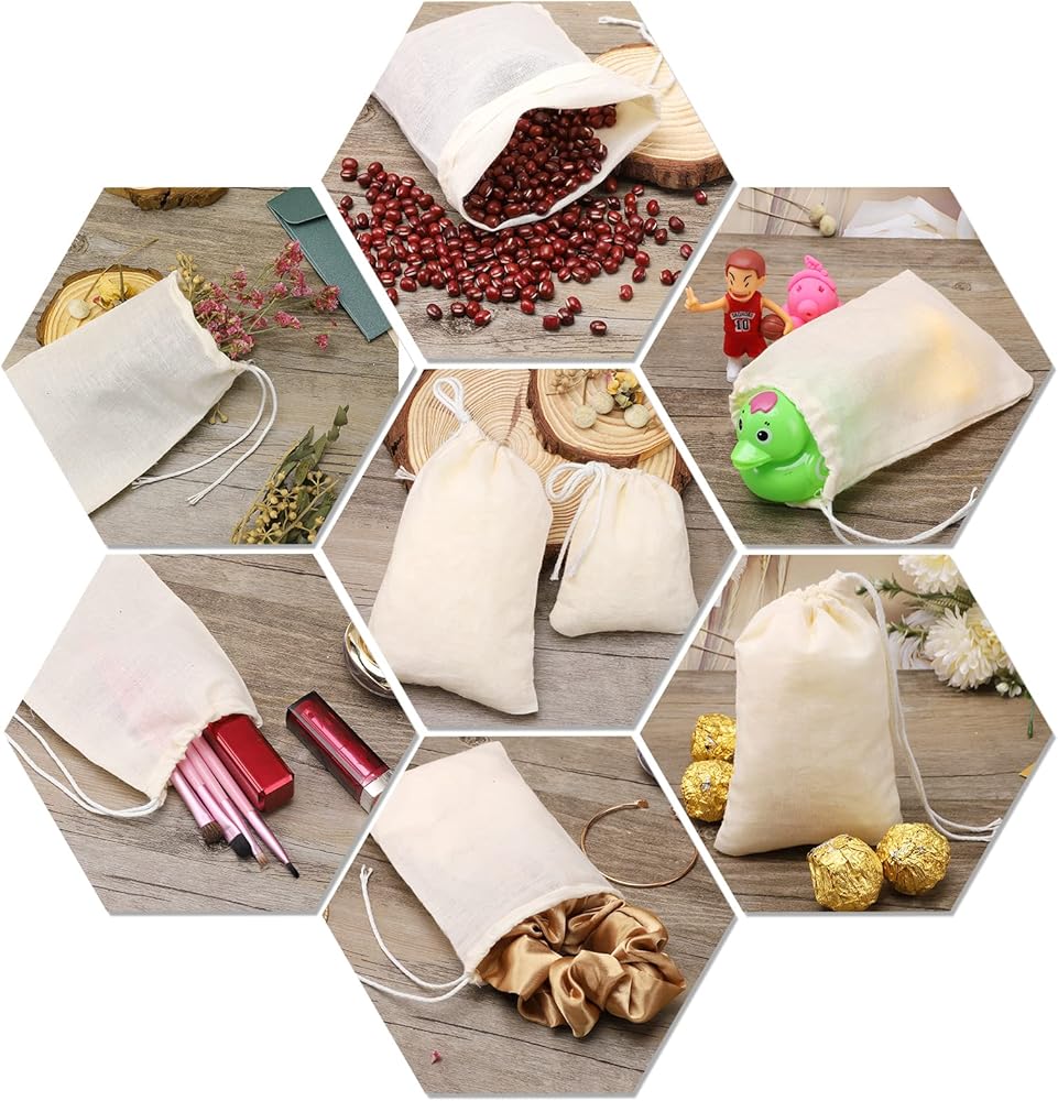 👍 ما ستحصل عليه: سيكون لديك 50 قطعة من أكياس الموسلين الصغيرة تأتي بألوان طبيعية. كمية كافية لك ولعائلتك لاستخدامها لفترة طويلة.
