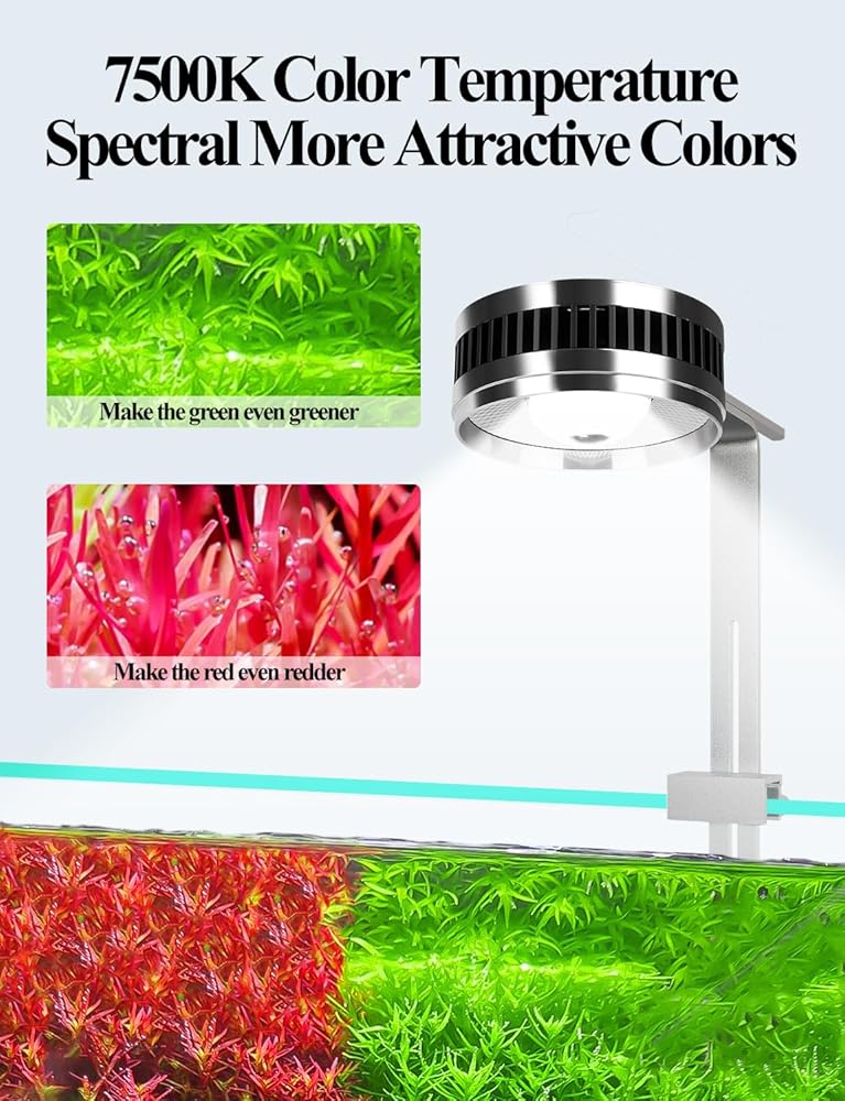【ارتفاع CRI ودرجة حرارة اللون 】CRI: 95Ra، يحاكي ضوء الشمس، وينبعث الطيف الكامل من الأطوال الموجية من 380 نانومتر إلى 780 نانومتر، مما يجعل خزان الأسماك أكثر طبيعية وأكثر تشبعًا؛ درجة حرارة اللون 4500 كلفن، الضوء الأصفر الطبيعي، درجة حرارة اللون المنخفضة، أقل احتمالية لإنتاج الطحالب الخضراء.