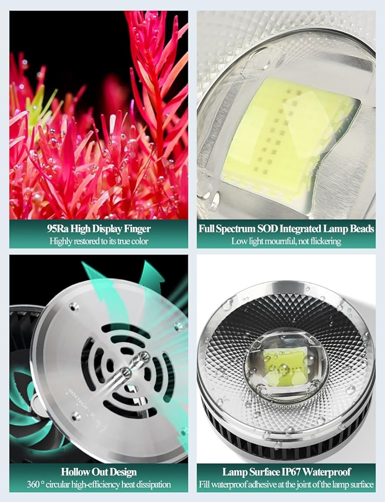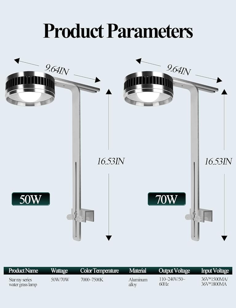 【إضاءة الشعاب المرجانية بدرجة احترافية】الطاقة: 70 واط، درجة حرارة اللون: 4500 كلفن، المادة: سبائك الألومنيوم، الفولاذ المقاوم للصدأ. خرزات مصباح COB متكاملة كاملة الطيف، ترتيب مصفوفة 8 × 9، لا يوجد اصطرابي، قابلية اختراق قوية للغاية، شفافة ومشرقة، مباشرة في الجزء السفلي من الخزان، تضيء بسهولة خزان الأسماك بالكامل، مع سطوع ضوء كافٍ ولا زوايا ميتة.