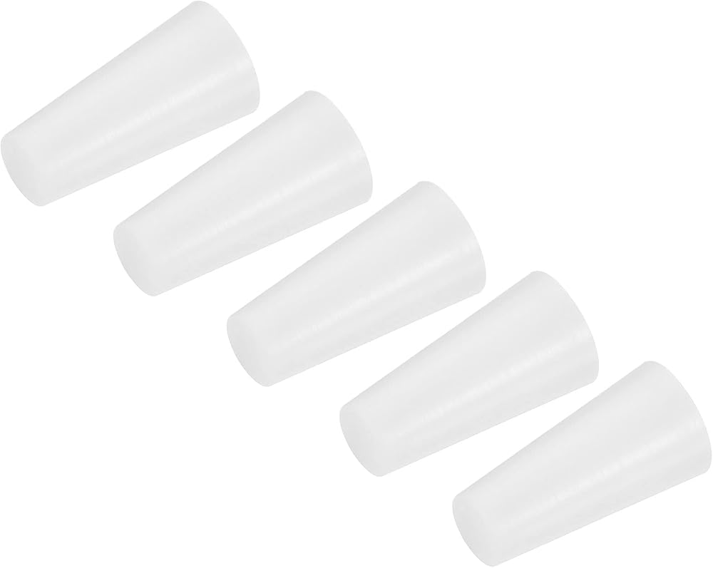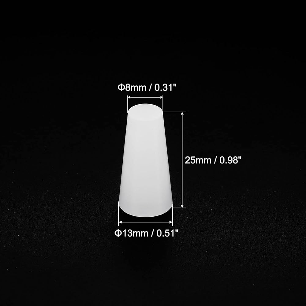 • The tapered plug is in size of: Bottom Diameter: 7mm / 0.28 Inch; Top Diameter: 12mm / 0.47 Inch; Height: 25mm / 0.98 Inch; In the package of: 5 x Silicone Rubber Tapered Plug