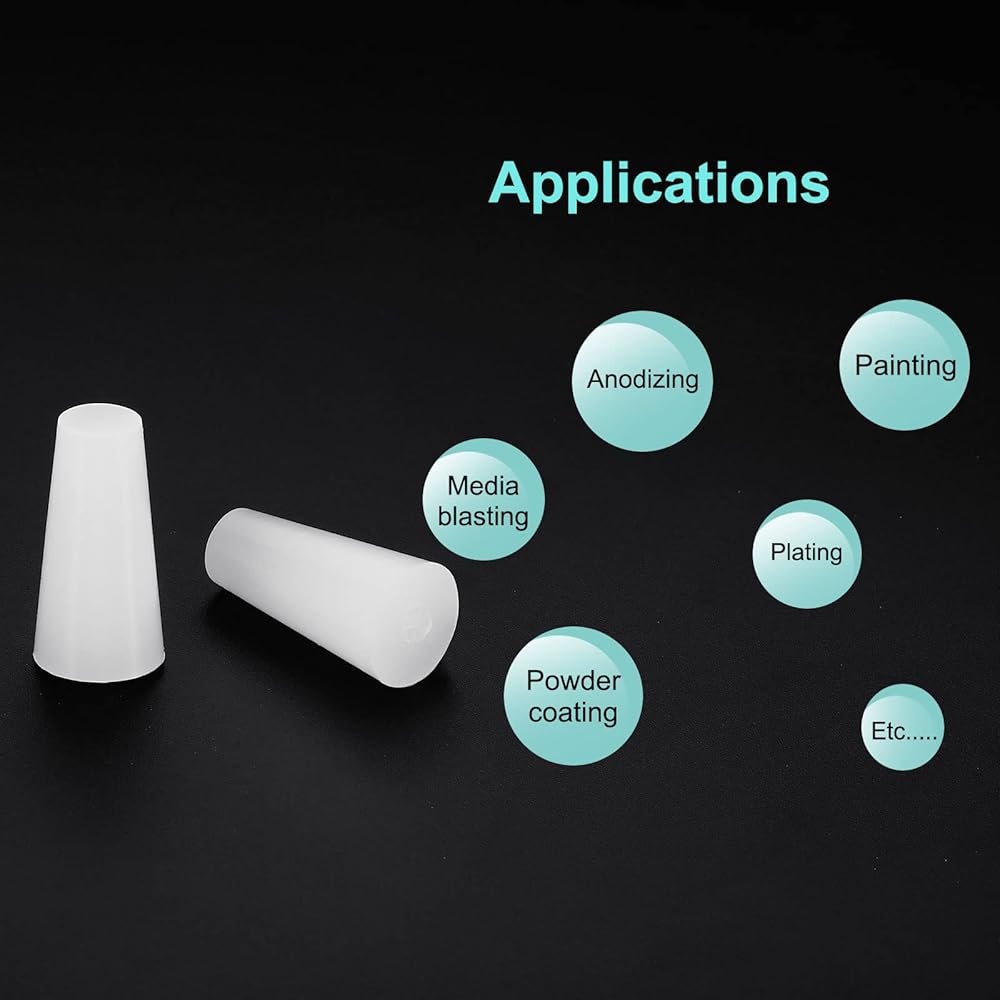 • Silicone Rubber Tapered Plug is designed to protect holes or threads during a powder coating process or other projects, use for powder coating, painting, plating, anodizing, sandblasting, etc, also can be used to seal bottles and flasks in the laboratory or at home, etc.