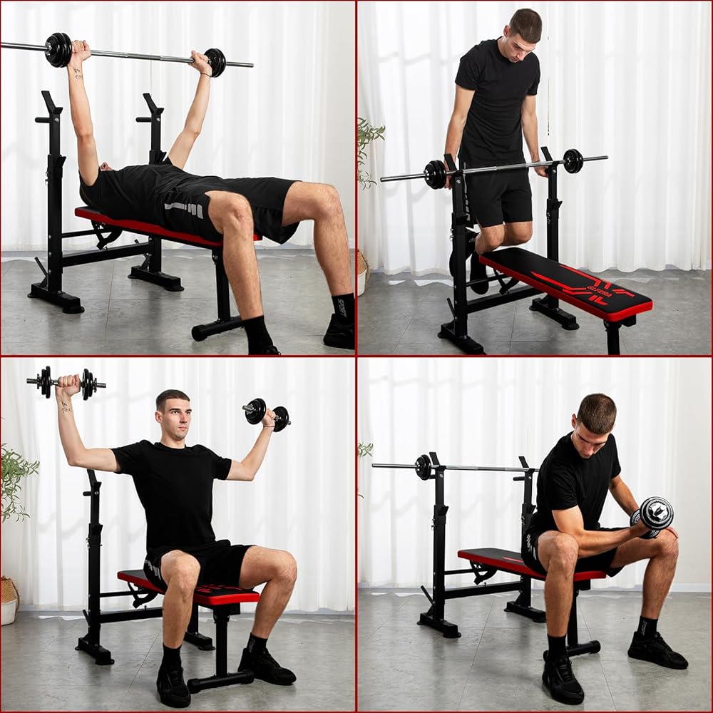 جهاز ضغط المقعد متعدد الوظائف - رائع لصالة الألعاب الرياضية المنزلية، يمكن لمقعد الأثقال هذا أن يسمح لك بأداء تمارين مختلفة، مثل ضغط المقعد، القرفصاء، مقعد الدمبل، ذباب الدمبل، والتجعيد، والدفع. يمكنها تمرين الذراعين والبطن والصدر والساقين والظهر وما إلى ذلك بشكل فعال.