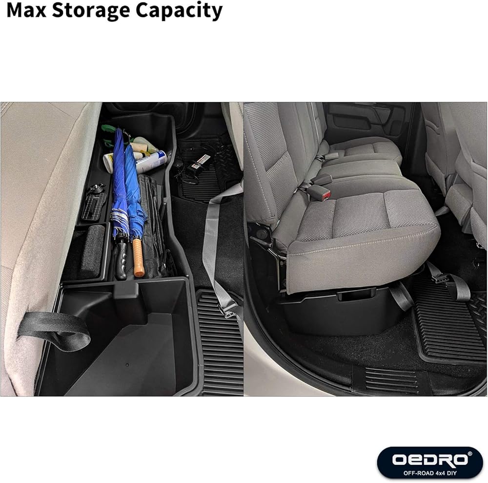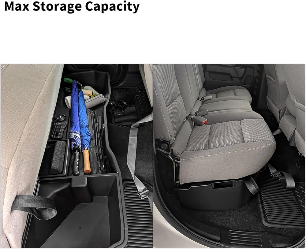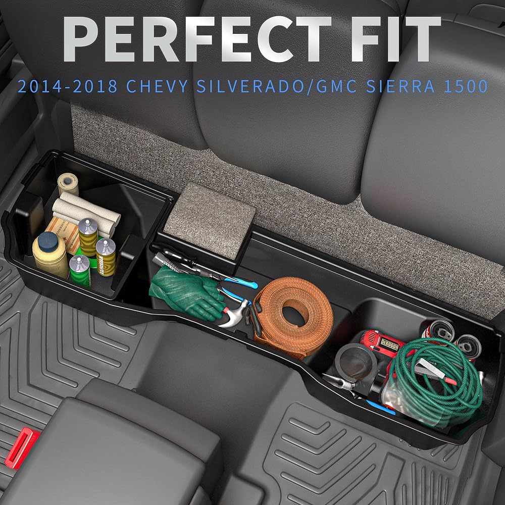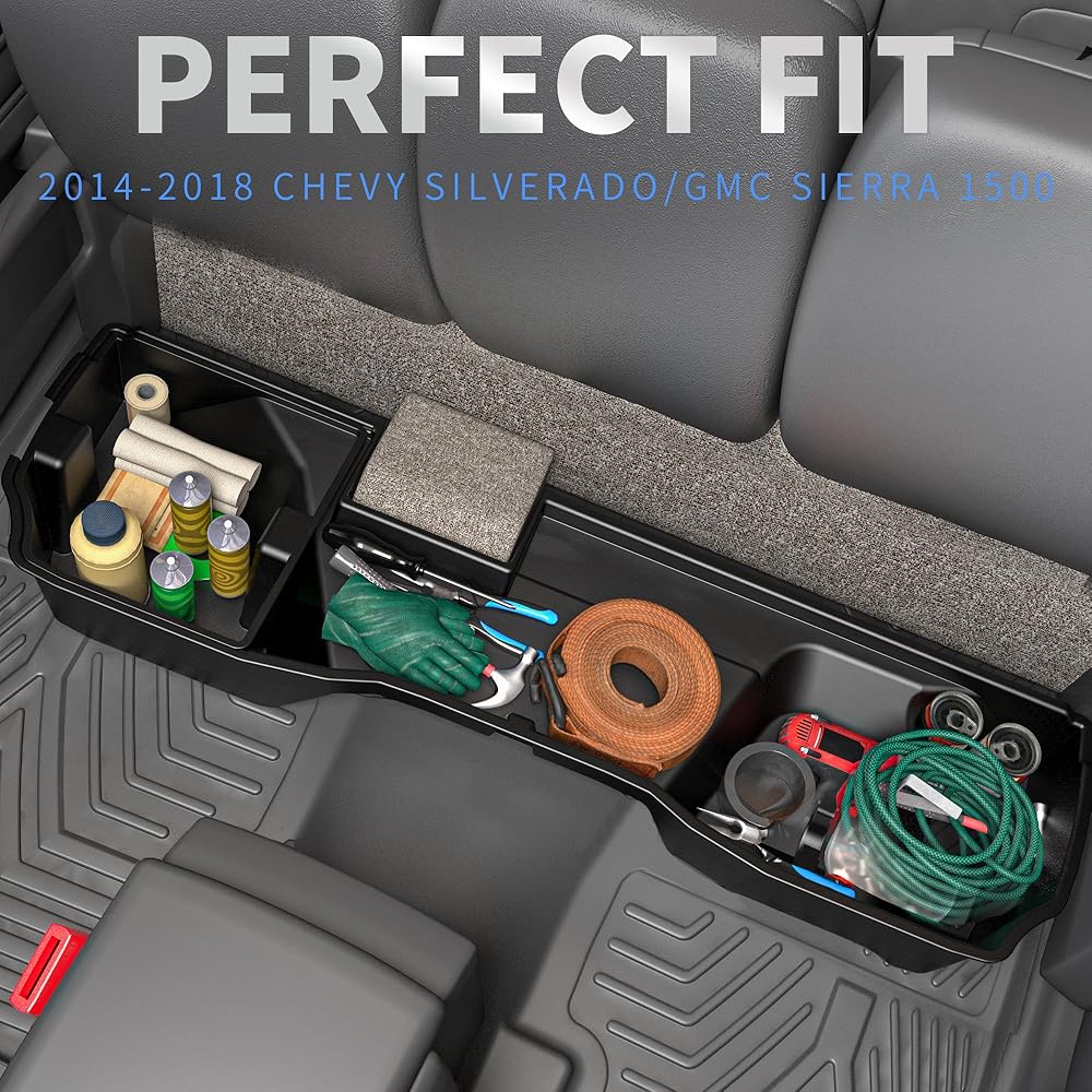 ملاءمة مثالية - ① متوافق مع 2014-2018 شيفروليه سيلفرادو/جي إم سي سييرا 1500، 2015-2019 سيلفرادو/سييرا 2500 3500 HD ② يتضمن صندوقين تخزين تحت المقعد (1 كبير و1 صغير إضافي مجاني)