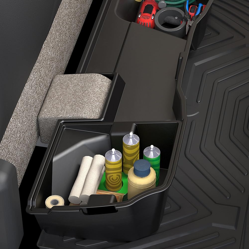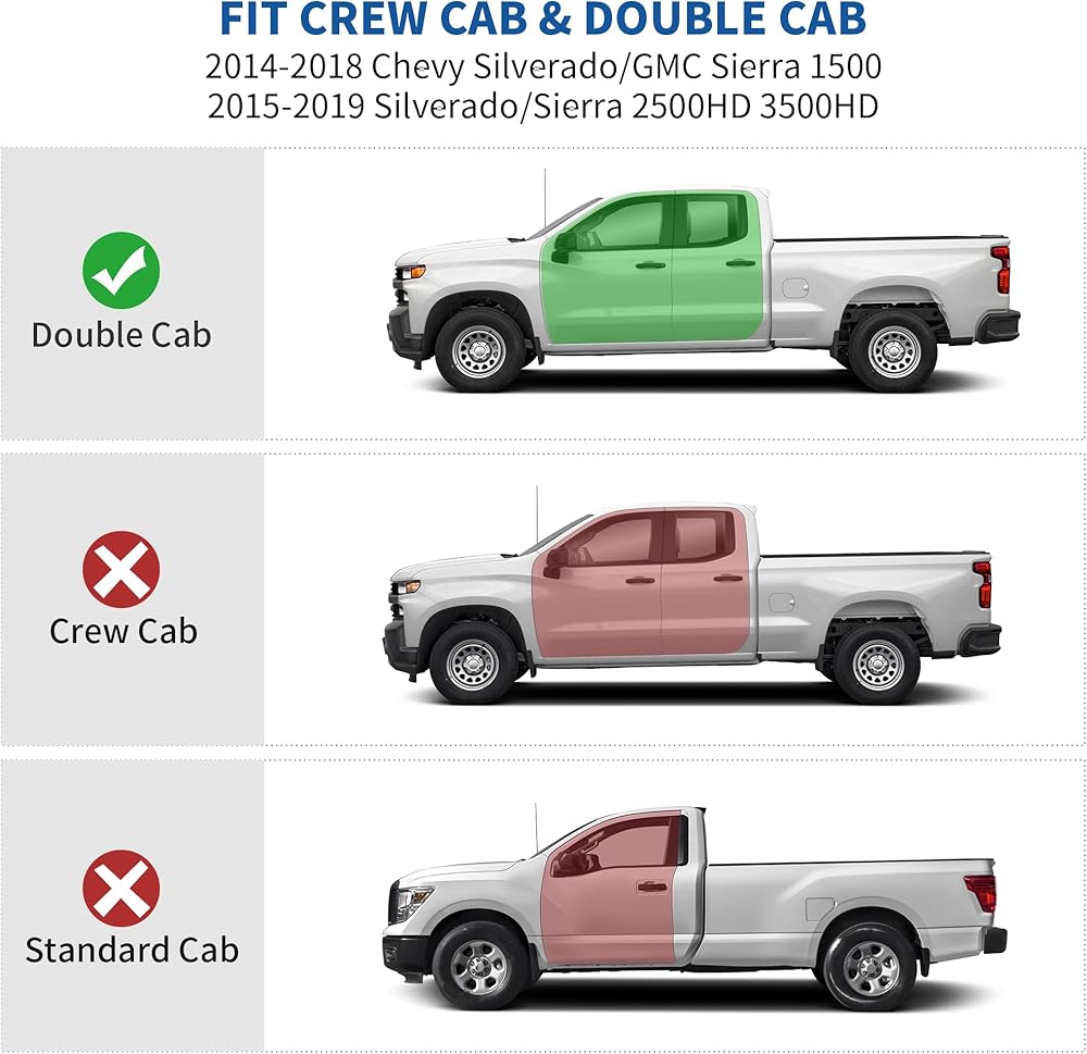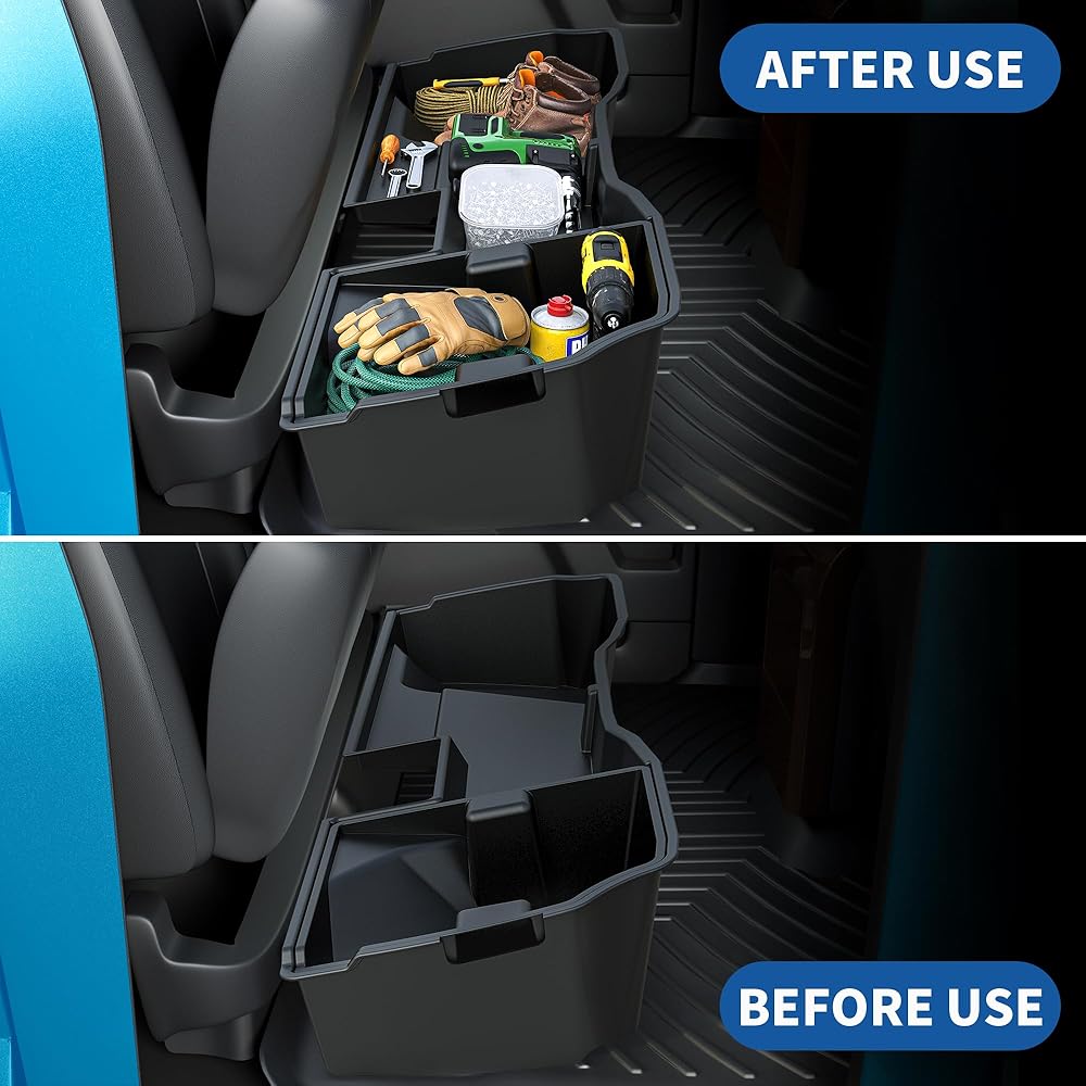 ملاءمة مثالية - ① متوافق مع 2014-2018 شيفروليه سيلفرادو/جي إم سي سييرا 1500، 2015-2019 سيلفرادو/سييرا 2500 3500 HD ② يتضمن صندوقين تخزين تحت المقعد (1 كبير و1 صغير إضافي مجاني)