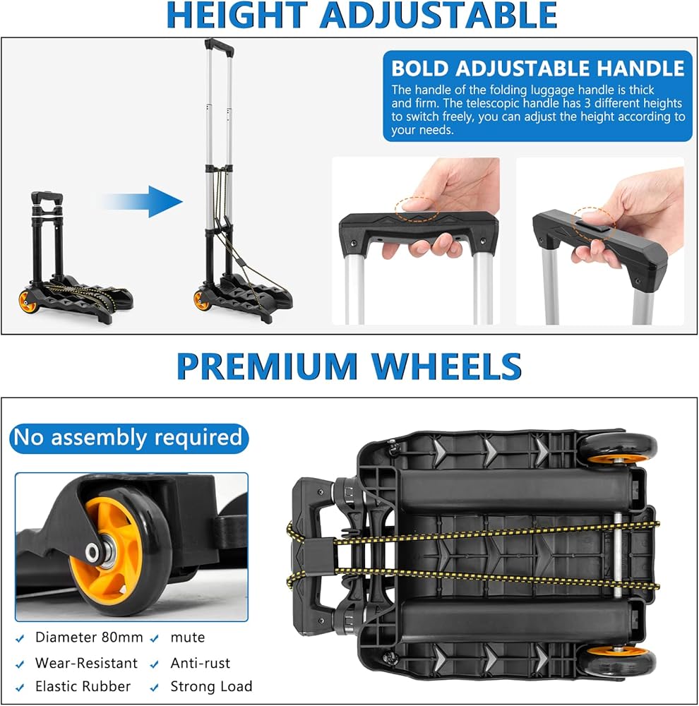 【Adjustable Handle】: The handle of the folding suitcase handle is thick and sturdy. The telescopic handle has 3 different heights that can be switched freely, and you can adjust the height according to your needs. The luggage trolley comes with a bungee cord, no additional purchase is required.