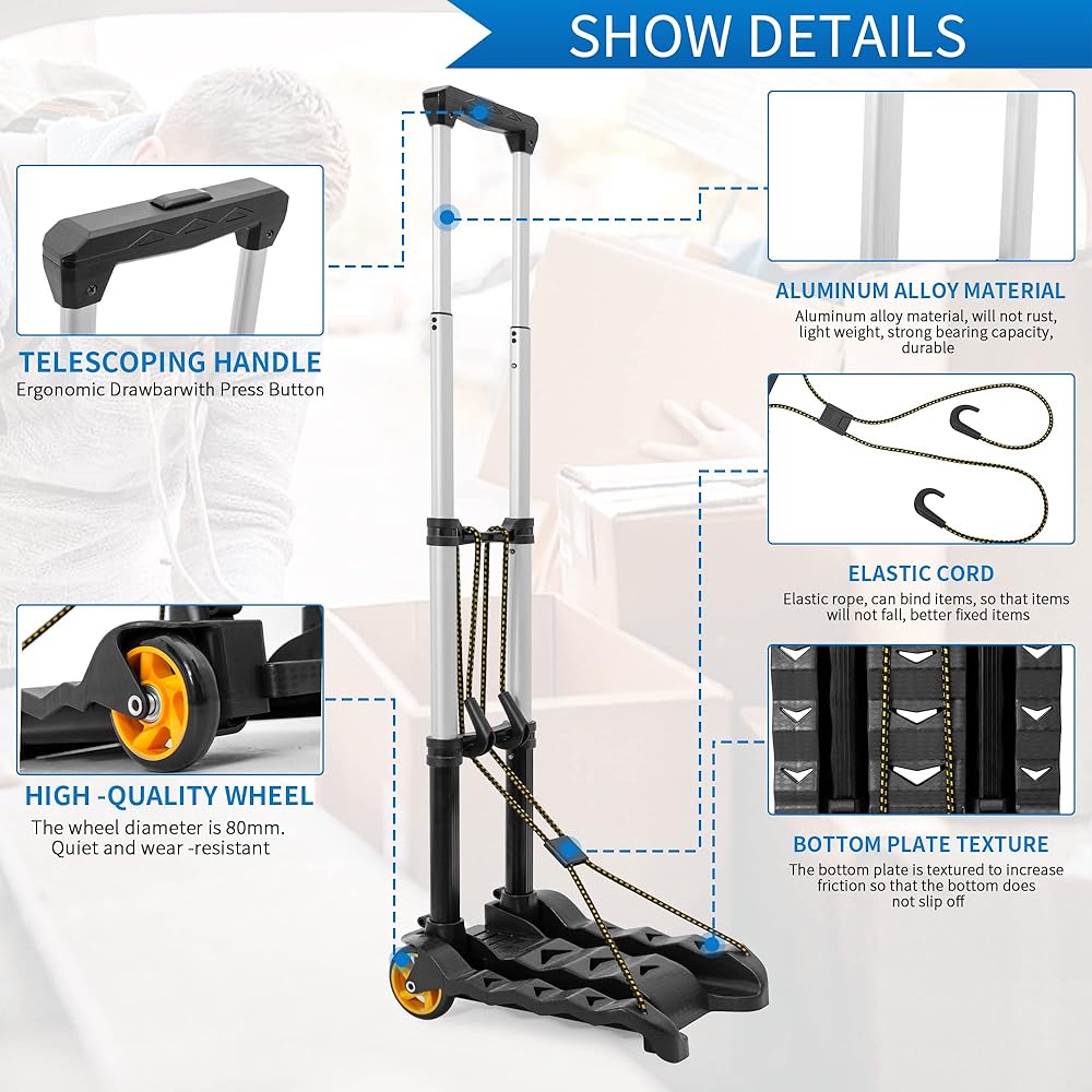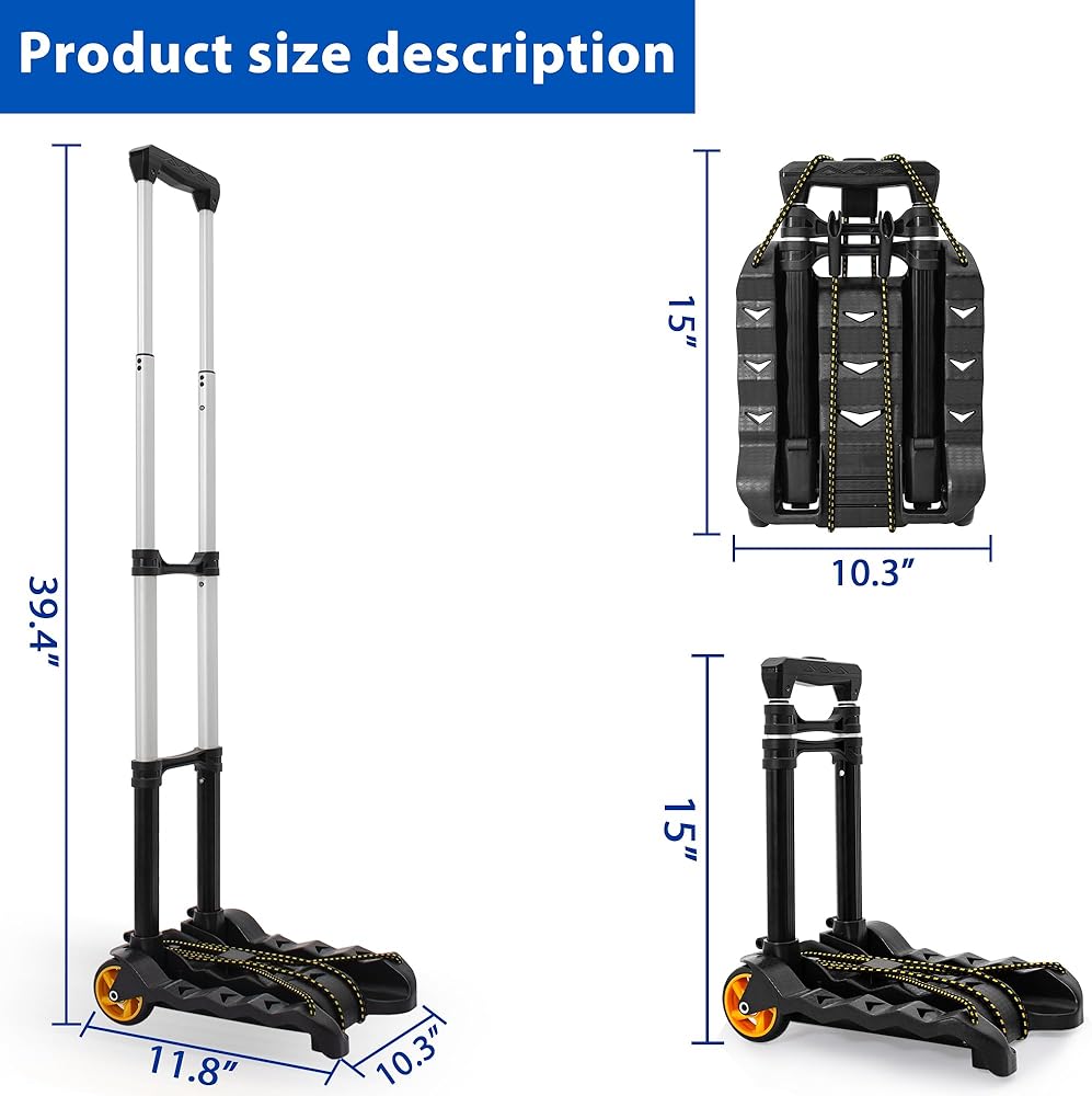 【Easy to Fold & Store】: Folded size: 15.6" x 13" x 3.5". Unfolded dimensions: 12.6" x 13" x 38.3". You can easily fold or unfold this folding truck in seconds. When not in use, the car seat trolley folds completely flat for easy storage, taking up no space and can easily fit in any overhead rack or under any seat. (Does not include car seats)