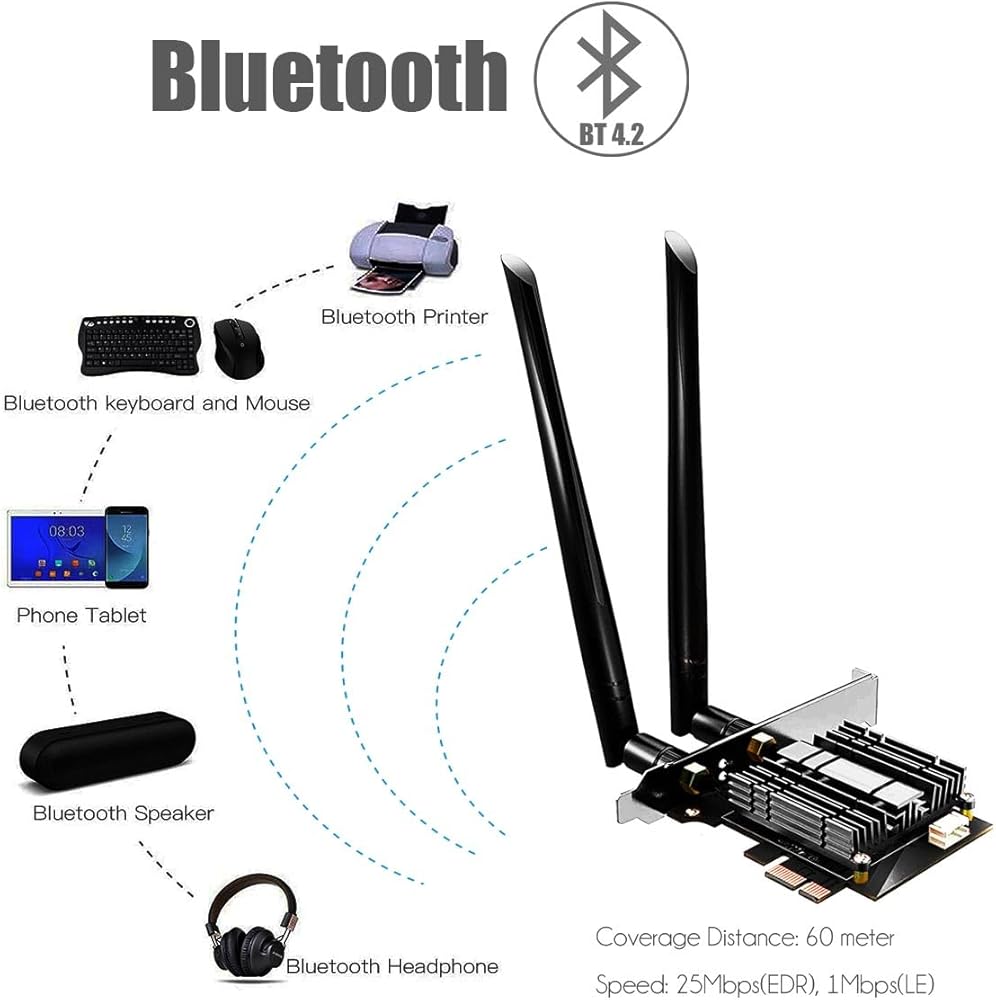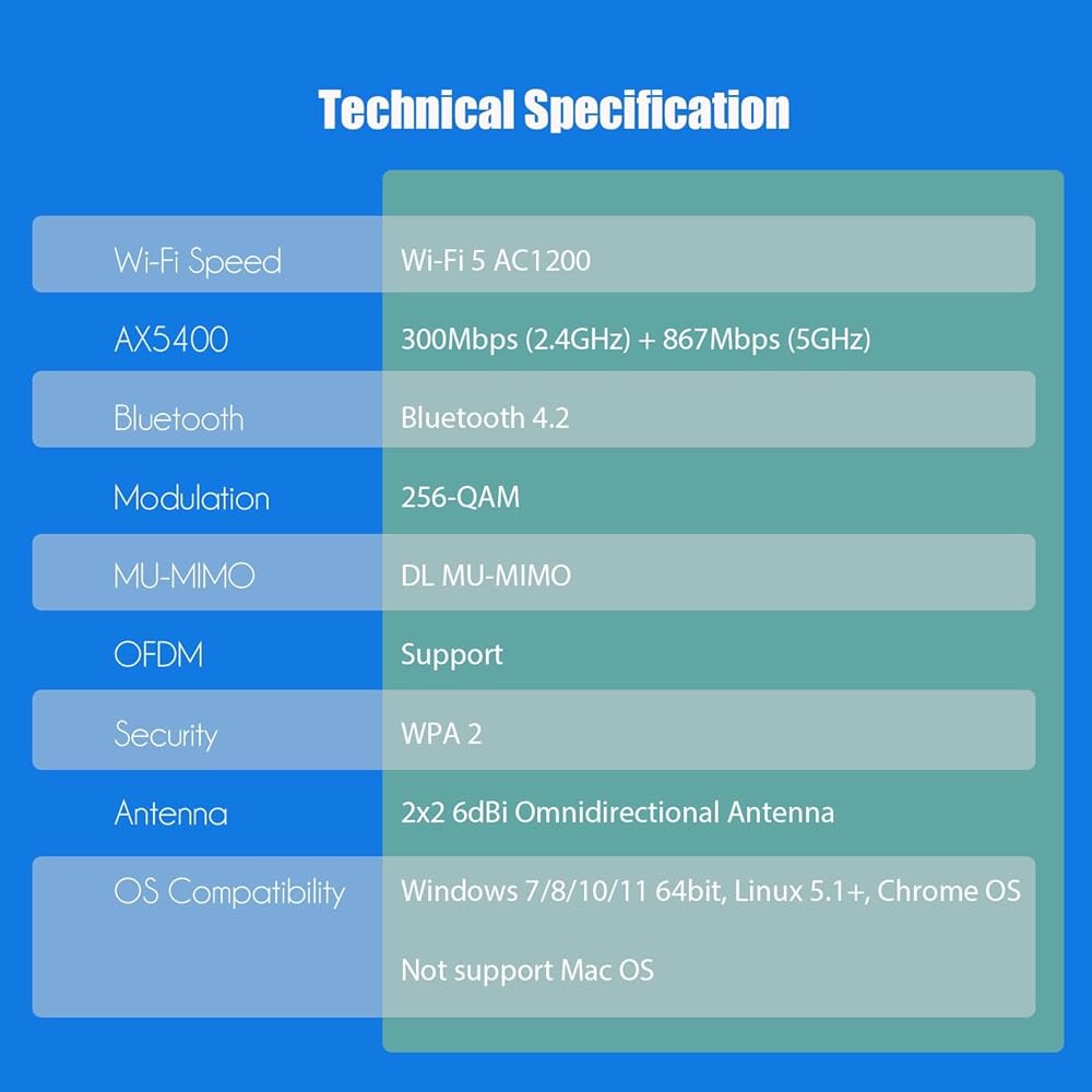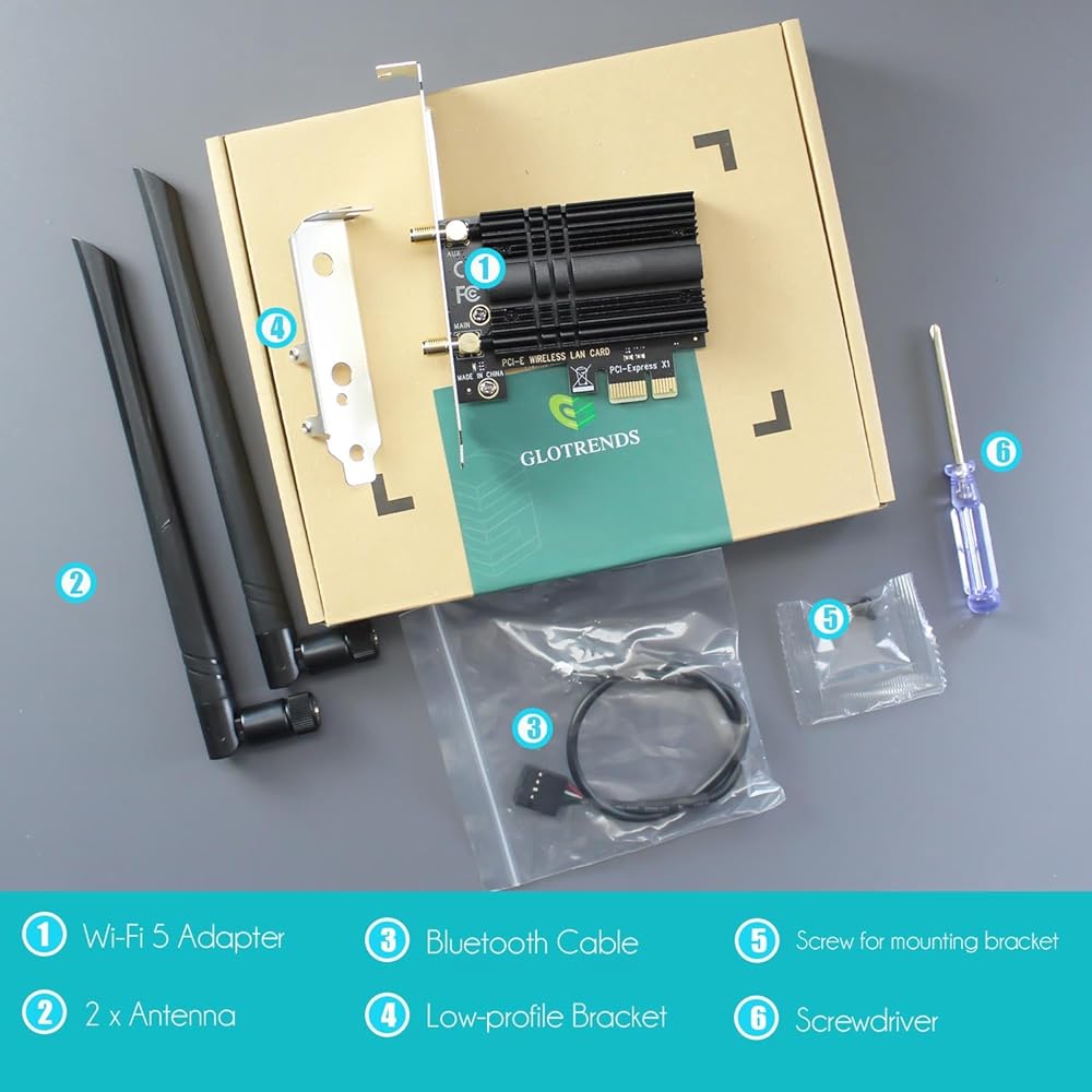 يعتمد محول GLOTRENDS Wi-Fi 6E AX5400 PCIe Wi-Fi على وحدة Intel AX210، المتوافقة تمامًا مع أحدث معايير IEEE 802.11 AX وتقنية Bluetooth 5.3. متوافق مع الإصدارات السابقة مع معيار Wi-Fi 6/5/4.