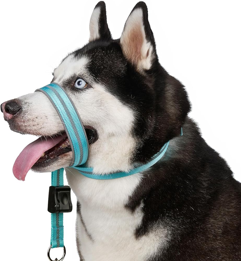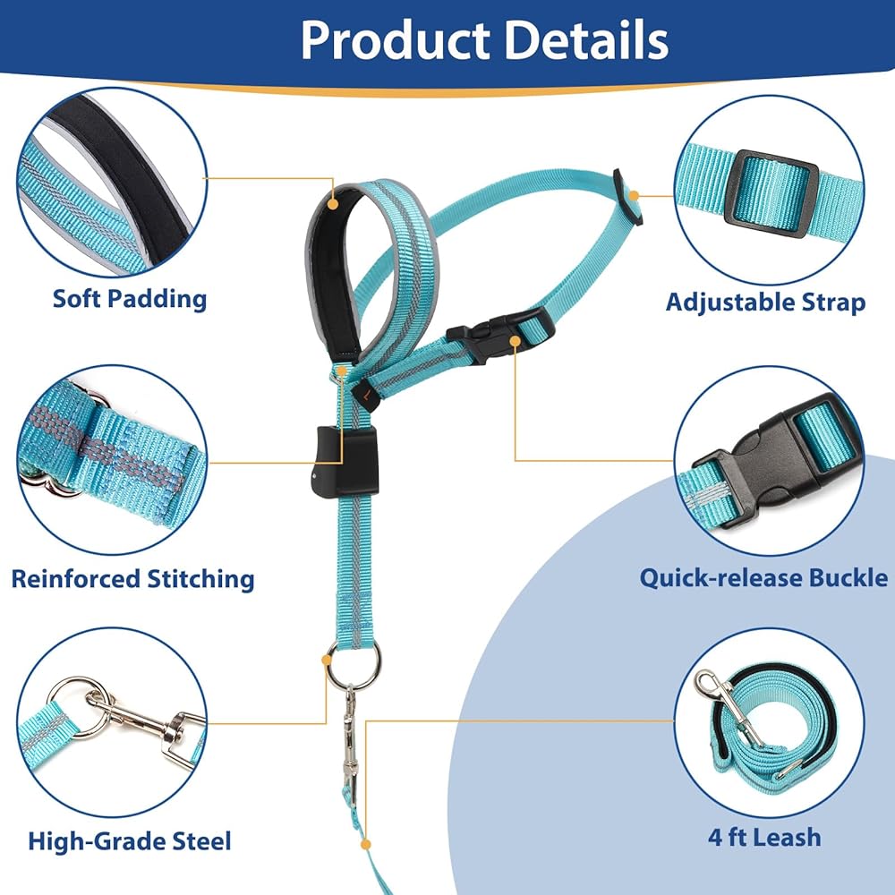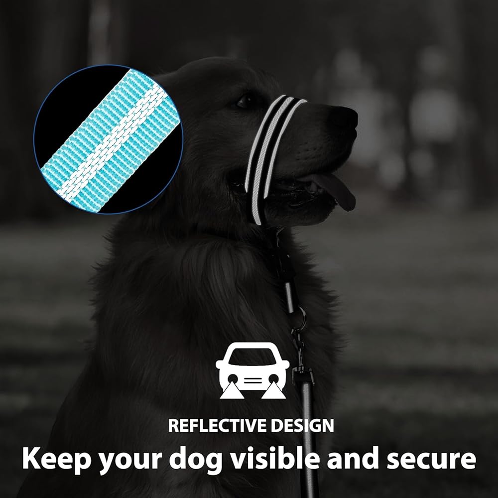 طوق رأس ناعم قابل للتعديل من باركليس مع بطانة، رسن عاكس مانع للسحب للكلاب، يتضمن مقود تدريب الأنف، يضمن سهولة التحكم في المشي (فيروزي، M)