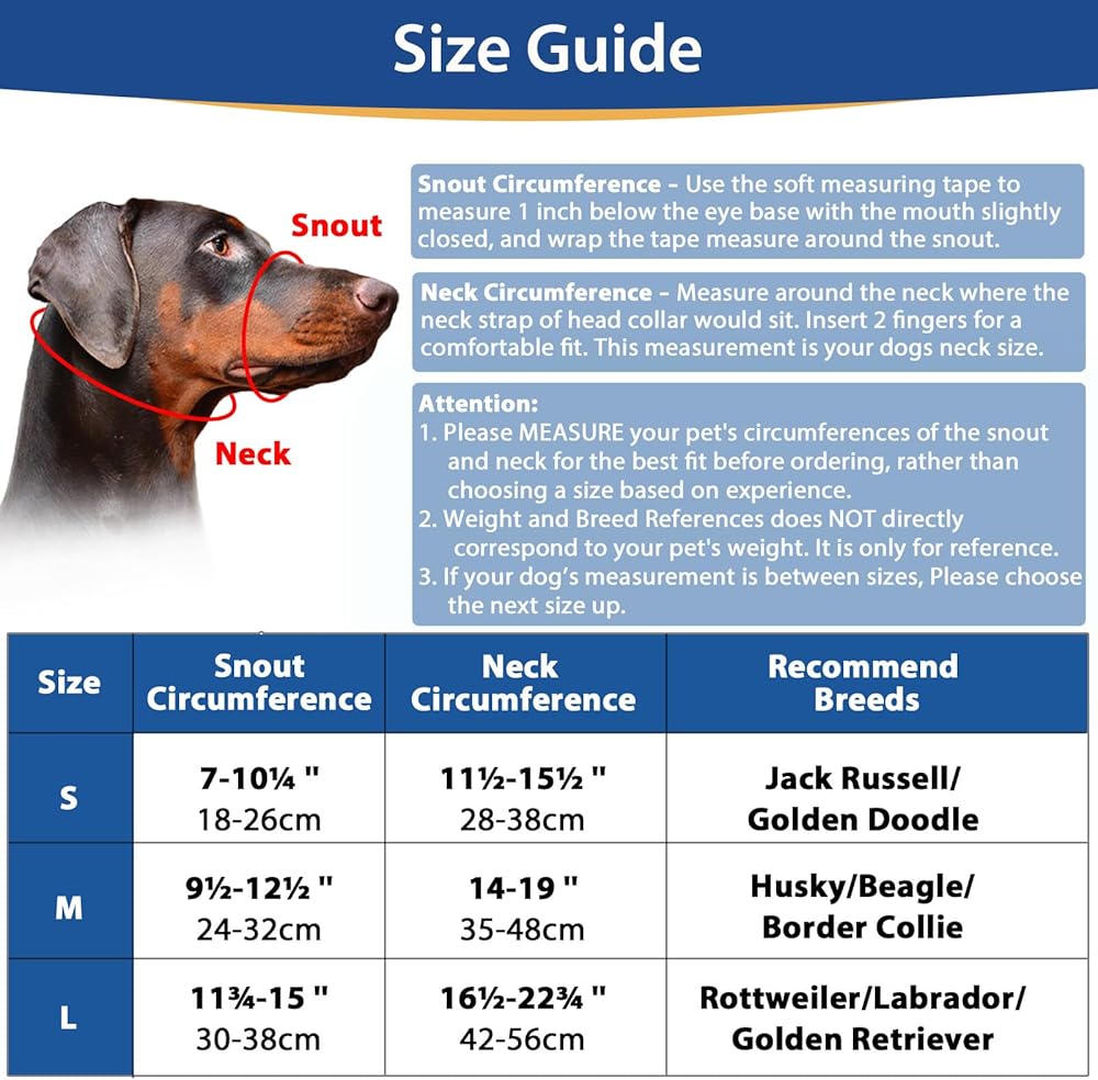• السلالات ذات الخطم الأطول: يرجى القياس قبل الطلب. بمجرد تعديلها بشكل صحيح، تضمن رسن رأس الكلاب الخاص بنا عدم انزلاق حيوانك الأليف من الطوق. مثالية للكلاب الصغيرة والمتوسطة والكبيرة ذات الخطم الأطول، مثل الراعي الألماني أو الدوبرمان. غير مناسب للسلالات ذات الخطم القصير مثل Bulldogs أو Boston Terriers.