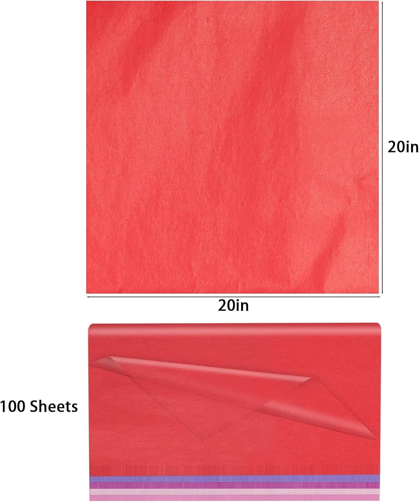 الحجم: يبلغ حجم المناديل الورقية حوالي 20 × 20 بوصة، مثالية لتغليف الهدايا، وتزيين أكياس الهدايا، وتغليف العناصر الهشة.