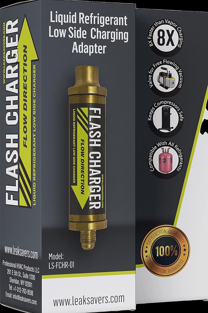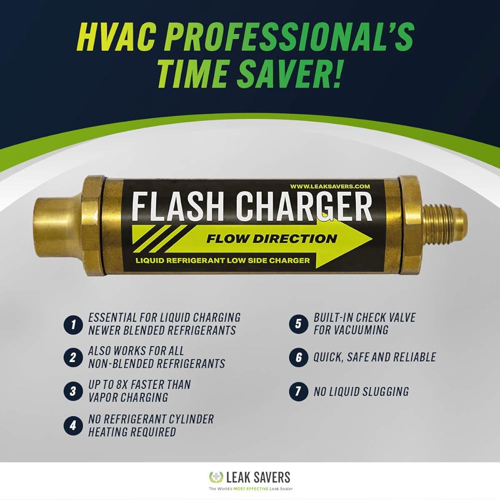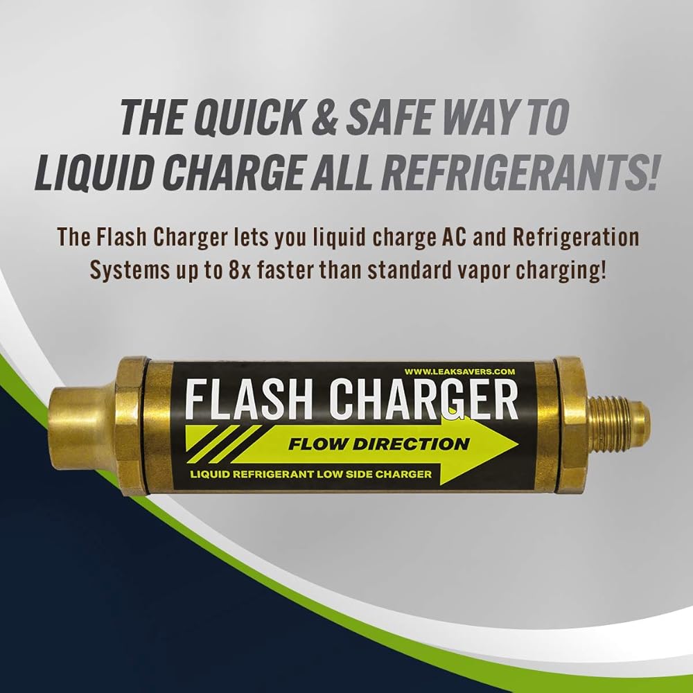 شاحن فلاش موفر للتسرب، محول شحن سائل تبريد منخفض الجانب - شحن سريع يصل إلى 8 مرات أسرع من شحن البخار - مع صمام فحص مدمج للتنظيف بالمكنسة الكهربائية - متوافق مع جميع المبردات