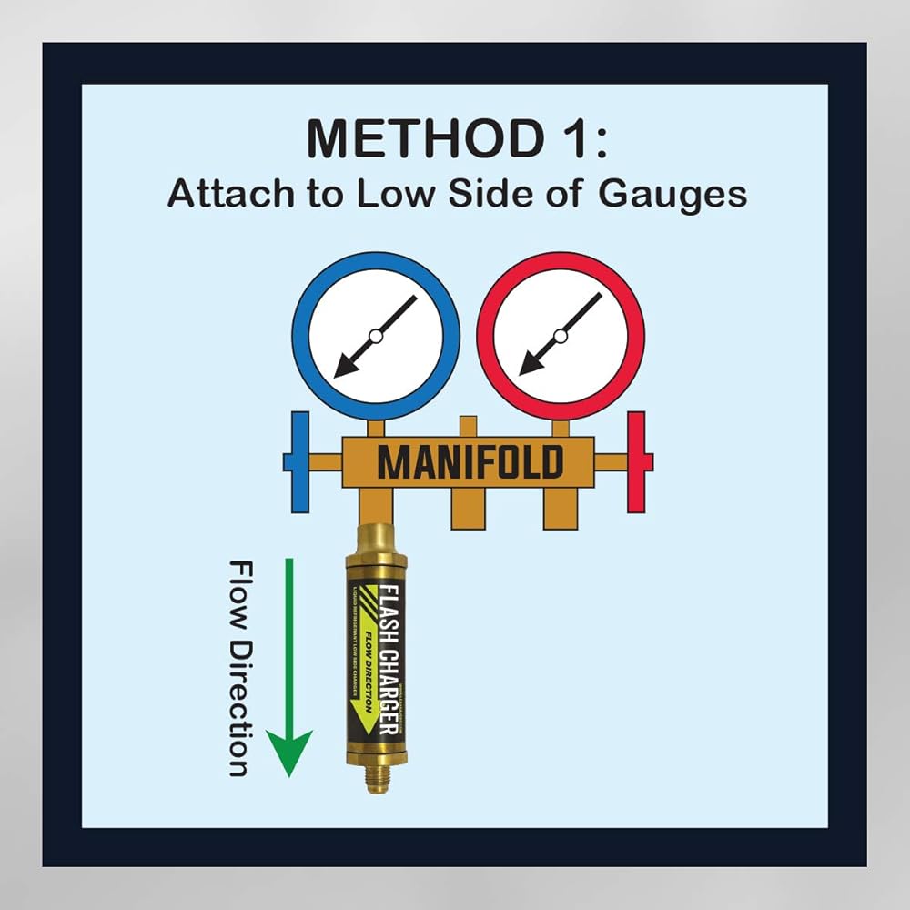 • مصنوع للاستخدام مع مضخات التفريغ وأجهزة الاسترداد: يحتوي Flash Charge أيضًا على صمام فحص يسمح باستخدامه مع جميع مضخات التفريغ. ويمكن استخدامه أيضًا لقياس سائل التبريد في آلة الاسترداد أثناء إجراء عملية استرداد غاز التبريد.