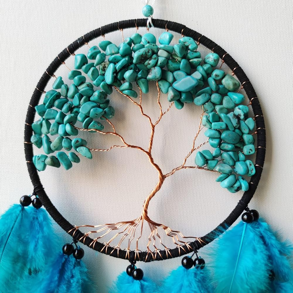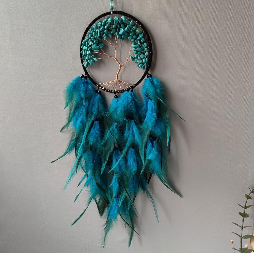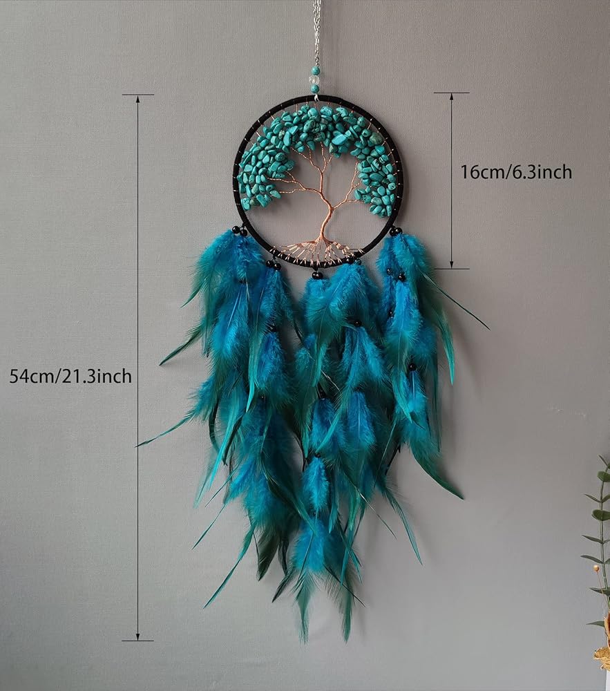 Macrame Dream Catcher: 100% Handmade. Made of ABS beads, Tree of life Dream Catcher: Made of feather, natural stone, copper wire, hide rope, iron ring and ABS beads. The eye-catching ethnic style brings unique visual enjoyment to people. enjoyment to people.