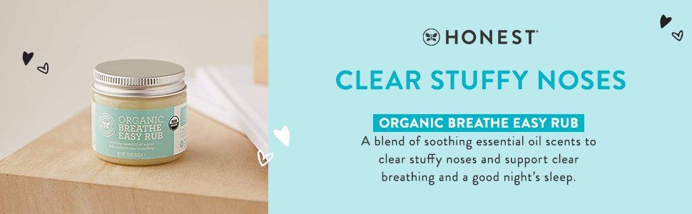 CLEAR STUFFY NOSES: Honest Organic Breathe Easy Rub is a blend of soothing essential oil scents to clear stuffy noses and support clear breathing and a good night's sleep. Our Honest aromatic vapor baby rub is perfectly safe and effective for babies, big kids, and parents, too. Organic lavender and rosemary oils soothe and calm, while eucalyptus and tea tree oils offer relaxing comfort to support a good night's sleep.