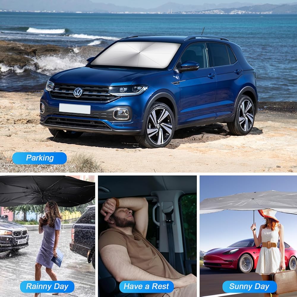 ☀️[حماية فائقة من الأشعة فوق البنفسجية]: تستخدم مظلة الشمس للزجاج الأمامي لدينا طلاء فضي نانو تيتانيوم عالي الجودة، مما يضمن أقصى قدر من الحماية ضد أشعة الشمس الضارة والأشعة فوق البنفسجية.