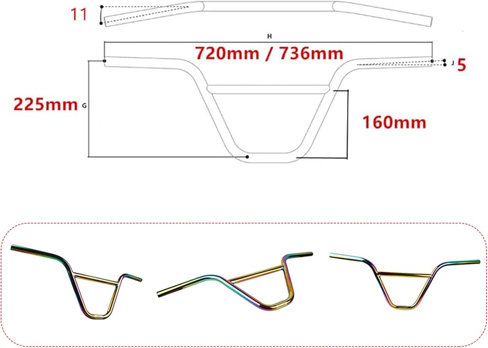 - * مقود BMX مقاس 8.85 بوصة: مقود دراجة BMX، العرض 28.3 بوصة، الارتفاع 8.8 بوصة