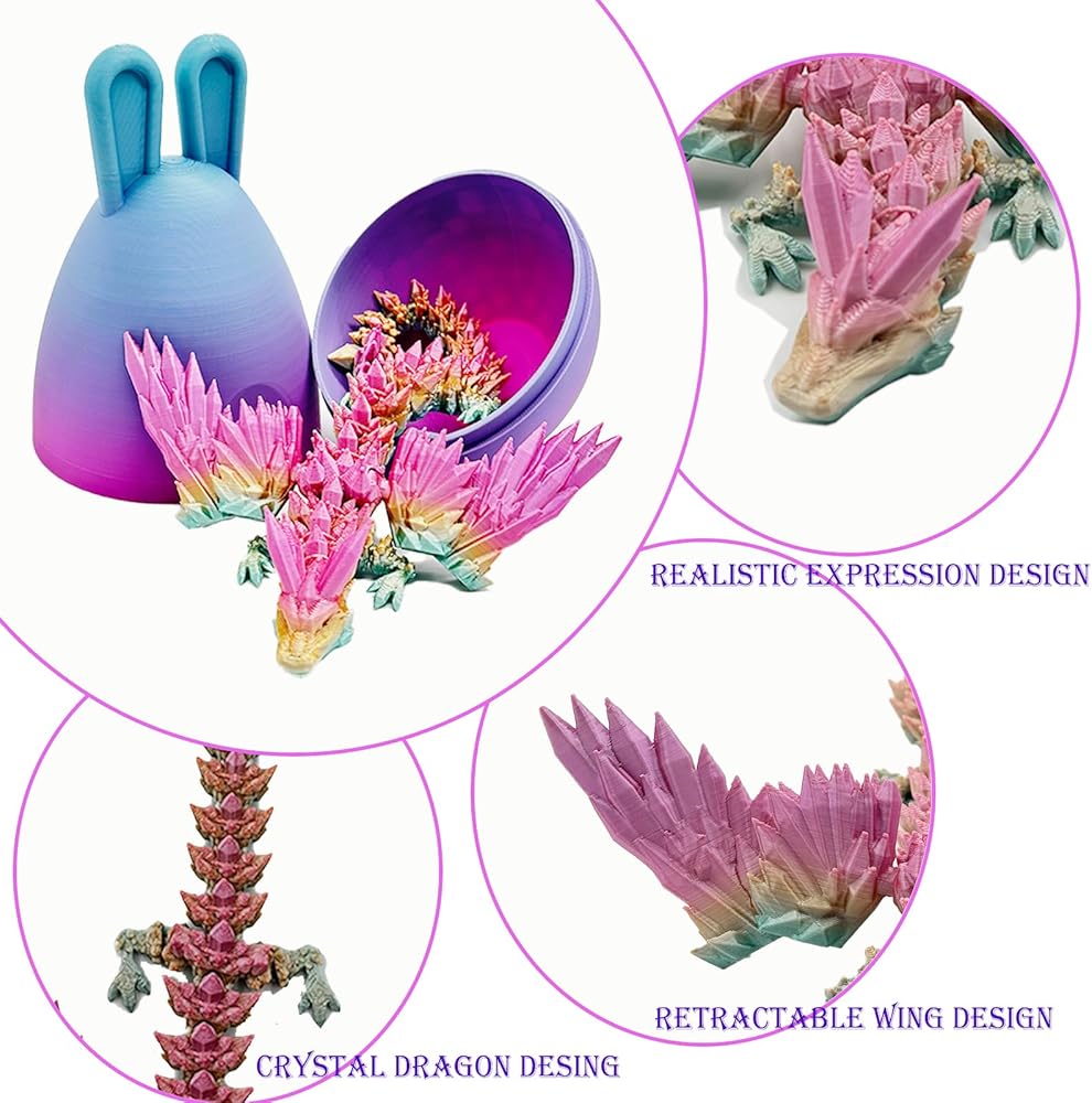 3D Printed Dragon in Egg with Wing, 3D Printed Dragon Egg,Crystal Dragon Fidget Toys,Full Articulated Dragon Crystal Dragon in Egg,Fidget Toys for Kids Adults Fidget Gifts
